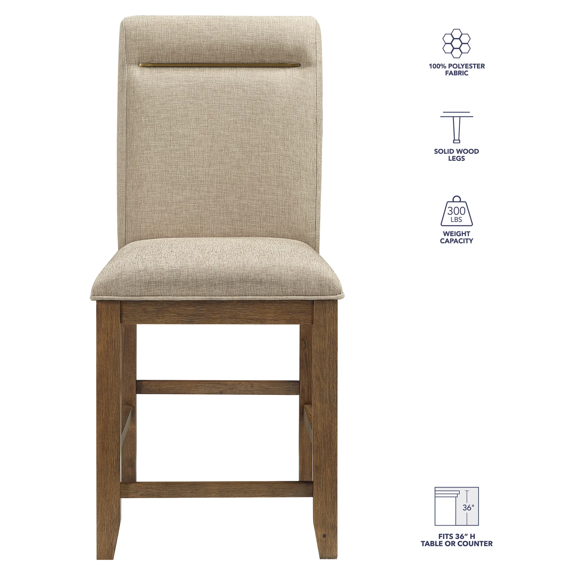 - The Counter Stool’s 24-inch seat height is perfectly suited for 36-inch counters, ensuring an ideal seating experience. Solid wood legs, reinforced with corner blocks and supported by front and side stretchers, provide exceptional stability and durability.