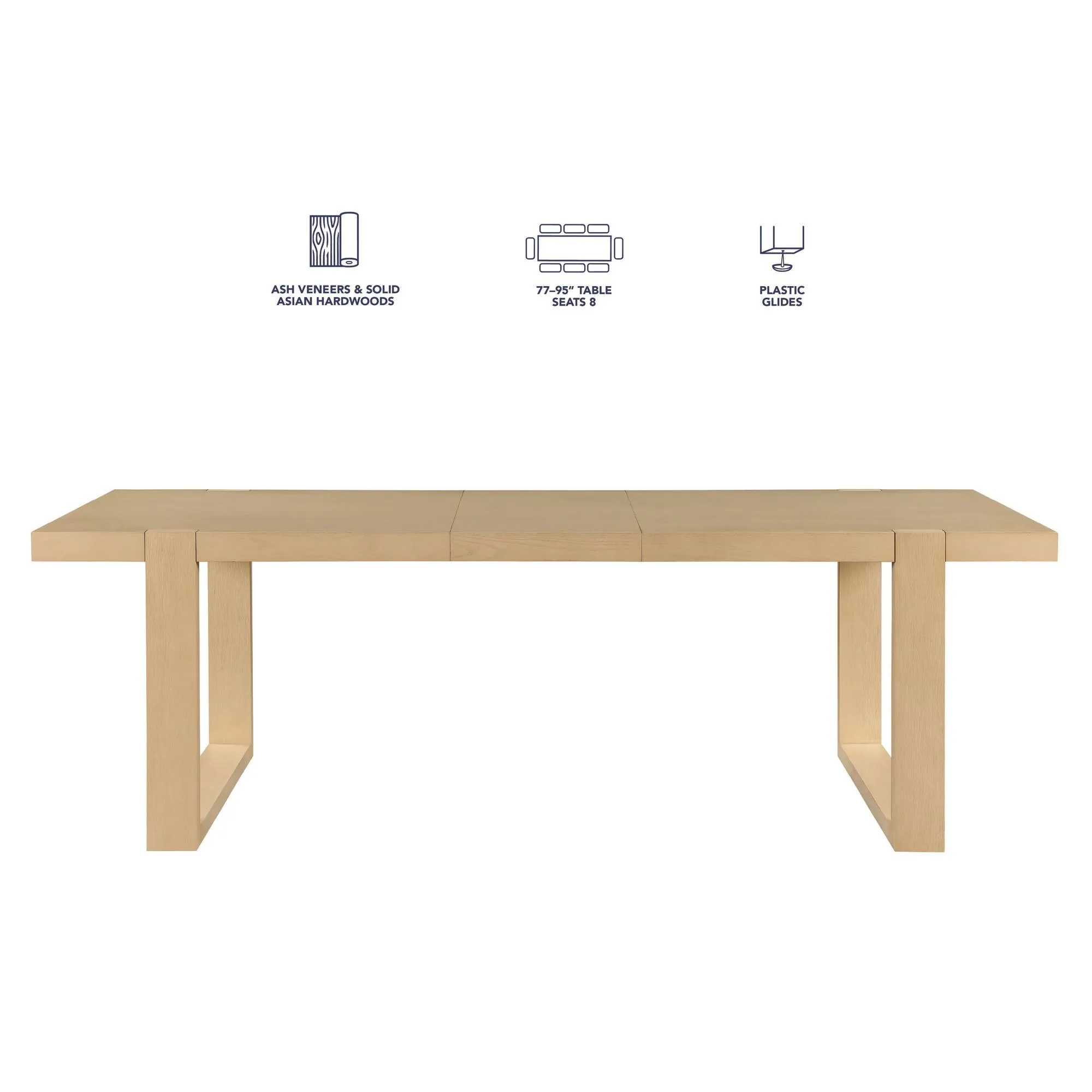 - Table expands from 77" to 95" with included leaf to seat up to eight