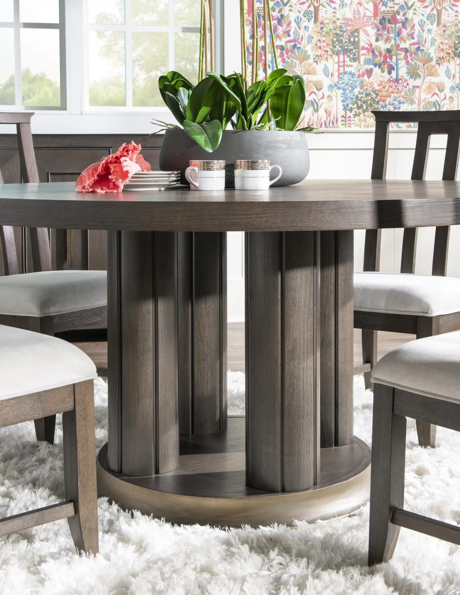 Lancia is the perfect blend of traditional charm and modern sophistication. This collection features a rich Charred Oak finish, crafted from Select Hardwood Solids and Oak veneers. The Hammered Gold Hardware adds a touch of luxury. Framed drawer fronts add dimension and depth while rounded pilasters soften the look. Stone tops are offered on select pieces for added durability and style.