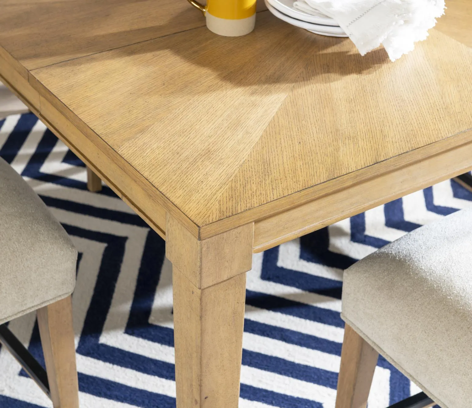 Crafted of Oak Veneers, the Linden group is finished in a warm Honey Oak tone with shaping on the legs and on the pedestal base of the round table. The classic credenza silhouette has 2 doors and 2 drawers and a bottom shelf. Traditional profiles mixed with country and rustic elements allow this collection to work in multiple design settings. This casual dining collection is scaled to perfectly fit smaller dining areas, breakfast nooks and open concept plans. The rectangular dining works great as a smaller set or in a more formal dining area, with seating for up to 6.