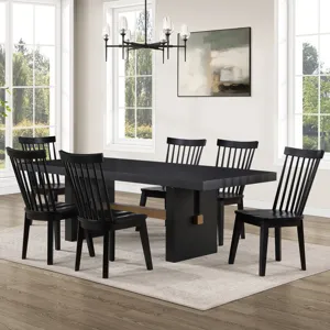 The Aubrey 78-96 inch dining table with an 18-inch leaf emanates modern lodge vibes, boasting clean lines and craftsman influences. Its sleek waxed driftwood finish exudes a contemporary allure, accentuated by ebony-finished stretchers with exposed tenons, allowing for effortless mix-and-match styling with other ebony pieces. Transition seamlessly from intimate gatherings to inclusive feasts with the simple insertion of the 18-inch leaf, expanding the table from 78 to 96 inches in a snap. Instantly accommodate up to ten people, ensuring ample space for memorable dining experiences with family and friends.