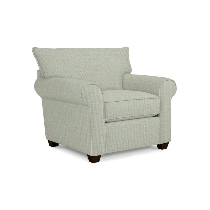 Simplicity and plush comfort are the reasons for this chair's mass appeal. It features a loose bed pillow back and a super soft Blend Down seat cushion for enhanced comfort. Sock arms and tapered legs compete the familiar look of this casual and versatile piece. You will love coming home to this fresh and inviting look. Also available are the matching sofa, loveseat, ottoman, and sleeper sofa. Also available with a removeable slipcover- see style 9364.