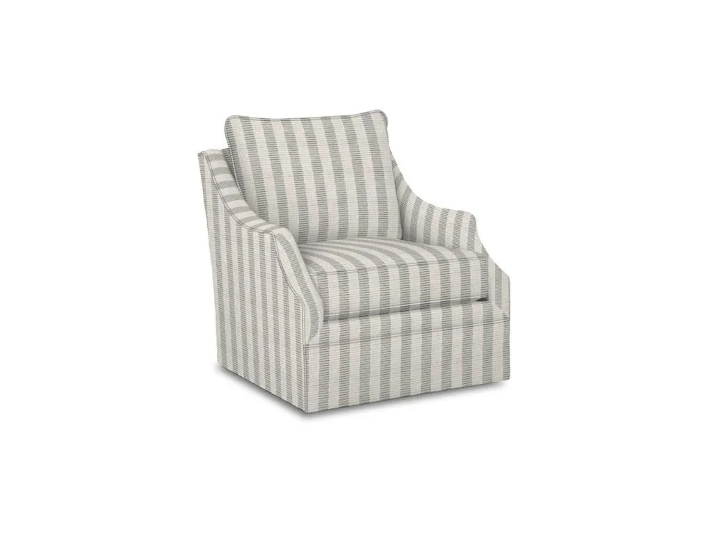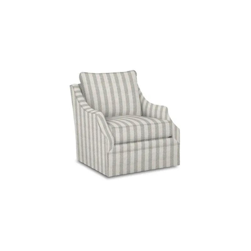 Perfectly designed and easy to love, this swivel chair is a comfortable classic piece you will love for years to come. It features a beautifully shaped scallop arm, a loose knife edge back pillow, and Paula's exclusive Down Blend cushion for the ultimate in softness. Also available as a swivel glider using style P087410BDSG