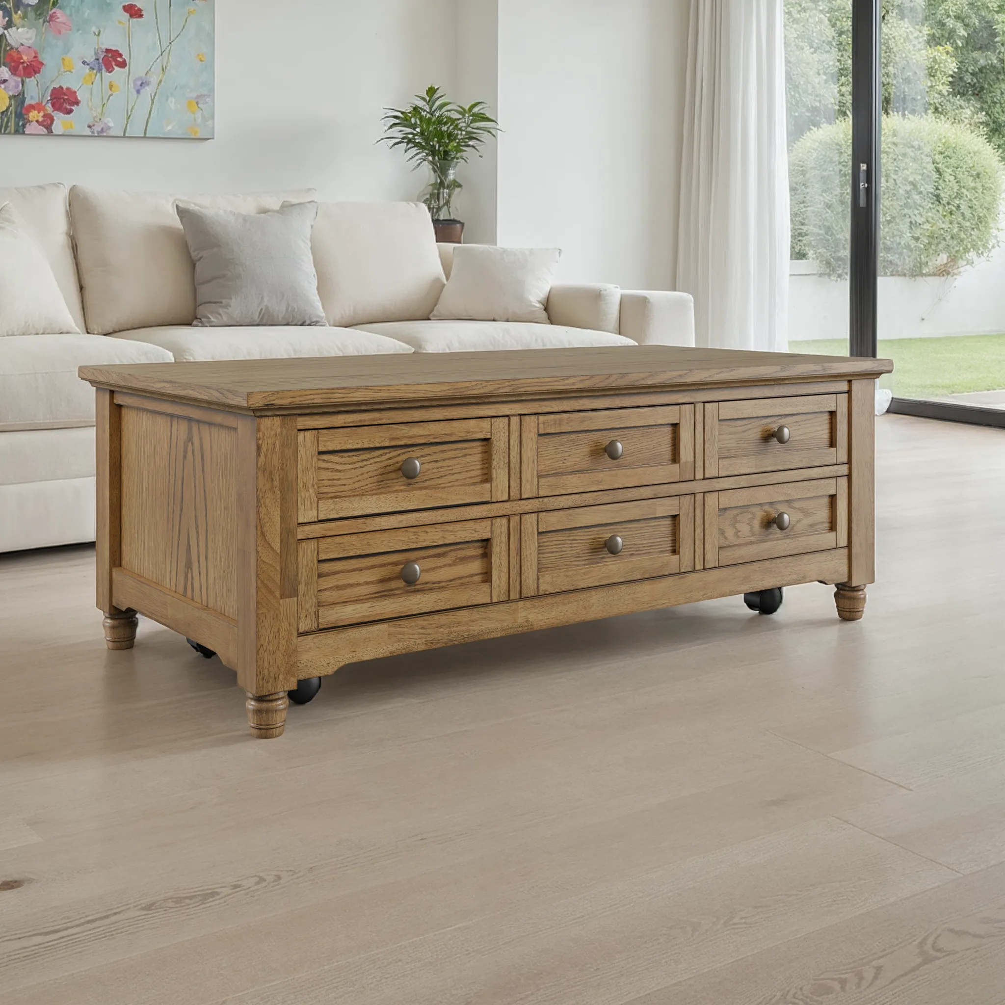 The Brentwood Lift-Top Cocktail Table brings together timeless modern transitional design with a modern sensibility for everyday living. Crafted from rubberwood and veneer, it provides a durable frame with a refined finish that highlights the wood's natural beauty. Carefully scaled for today's homes, it balances function and style with thoughtful details such as smooth lift-top mechanisms, hidden storage, caster wheels, or clean-lined silhouettes depending on the model. The generous top surface is ideal for entertaining, working from home, or displaying decor, while integrated shelves or drawers keep essentials organized. Whether styled in a casual family room, a transitional living space, or a more traditional setting, the Brentwood Lift-Top Cocktail Table adapts seamlessly to your lifestyle. Its versatile character allows it to pair with upholstered seating, wood accents, or modern decor, making it a flexible centerpiece. By combining practical everyday features with classic design notes, the Brentwood Lift-Top Cocktail Table delivers both comfort and confidence. A functional yet stylish addition, it elevates your home with ease.