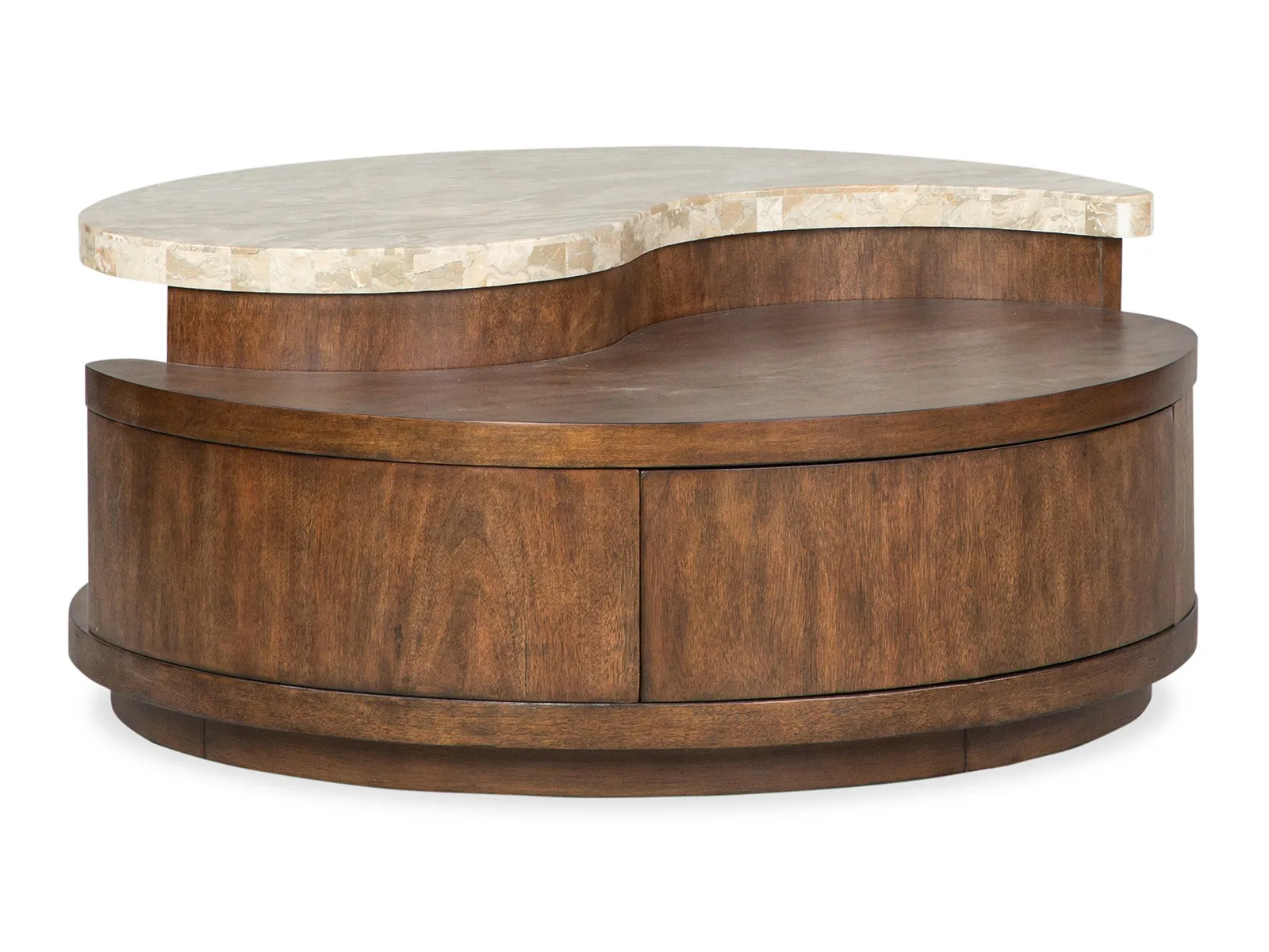 The McPherson table collection blends organic form with modern sophistication. A rich Burnt Umber finish highlights the sculptural contours of the wood base and while a soft stone top adds contrast and texture. Thoughtfully designed with Satin Nickel hardware and this collection merges natural warmth with contemporary form — an ideal focal point for spaces that embrace bold silhouettes and elevated materials. Whether styled simply or layered with decor and McPherson brings a grounded elegance to any room.