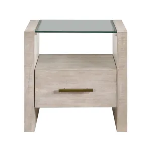 - Two deep drawers with side drawer glides and a handy under glass top shelf offer convenient storage and a beautiful display area for living room essentials