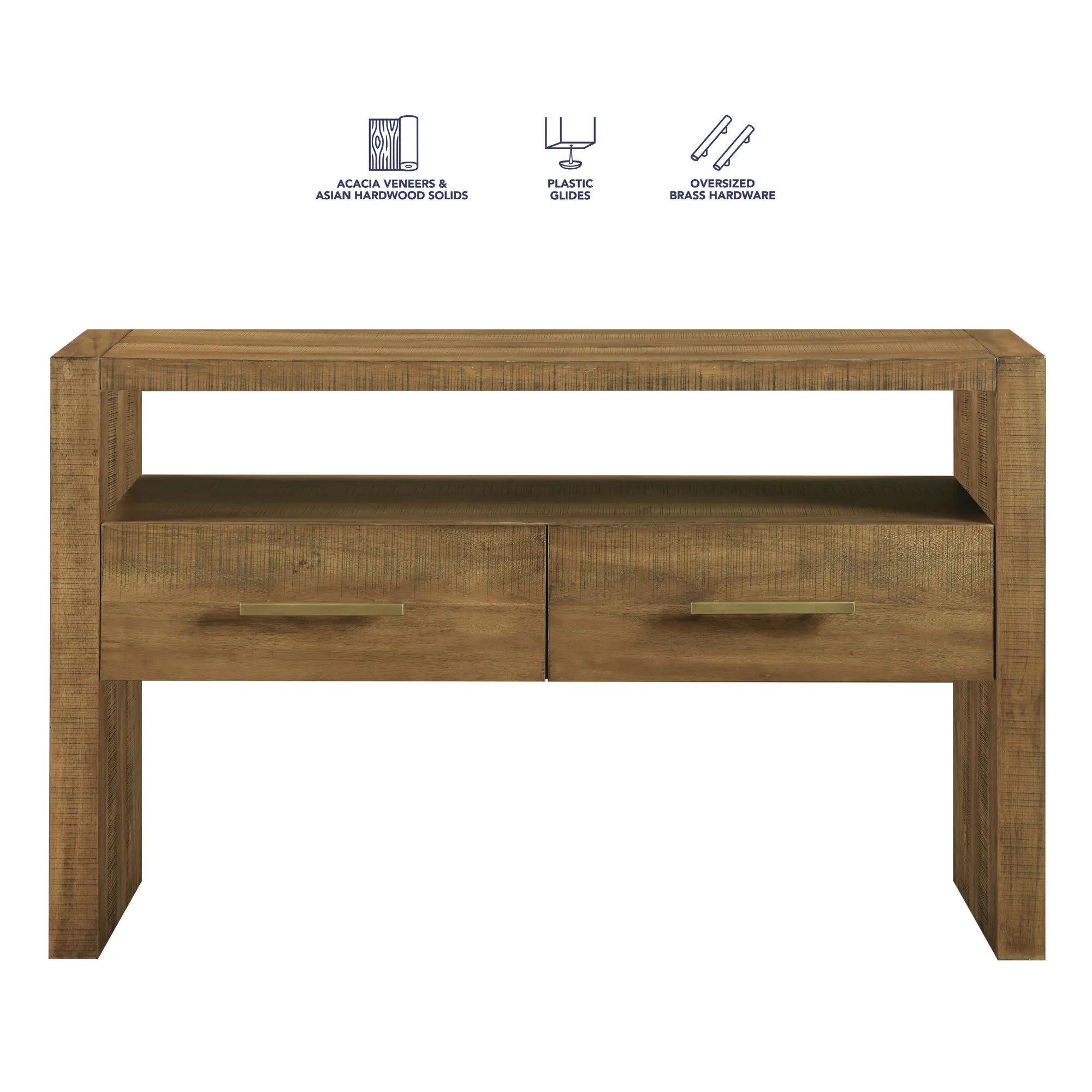 - Expertly crafted of Acacia veneers, solid Acacia and Asian hardwood solids and engineered woods