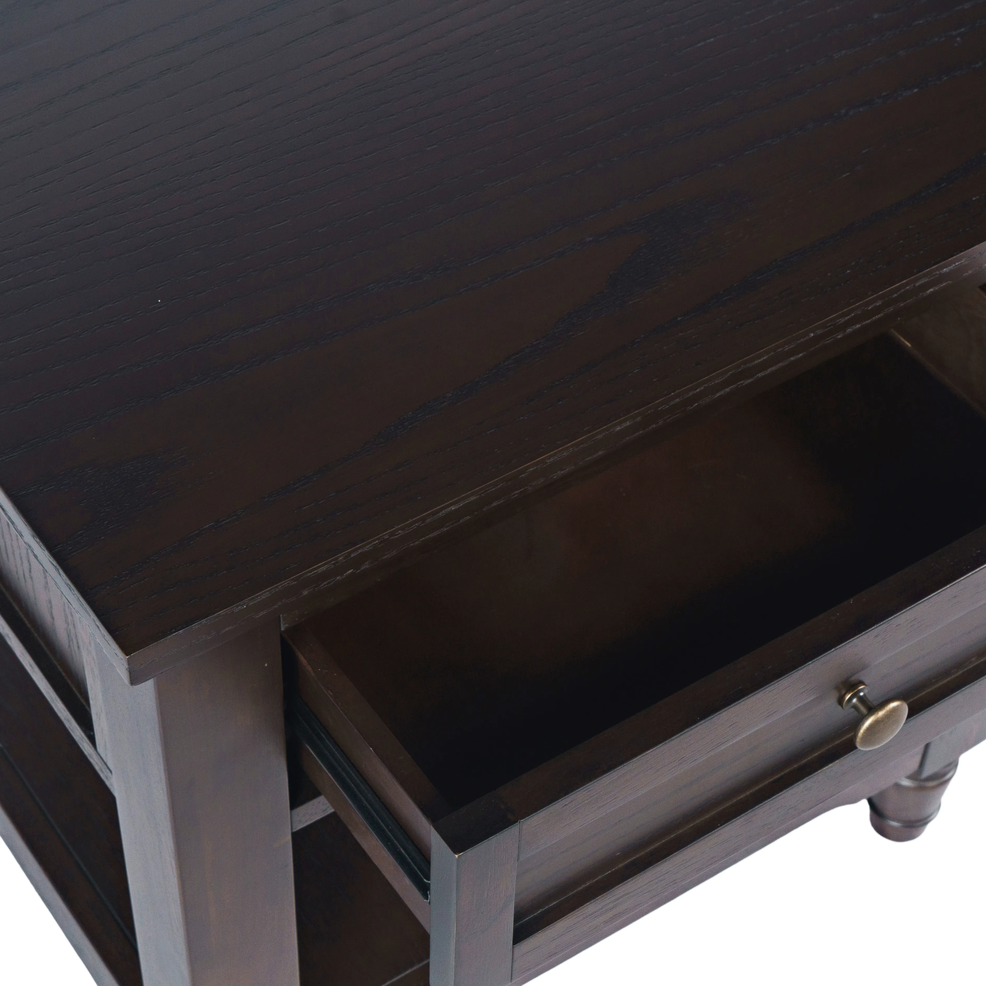 • -Crafted from rubberwood and veneer -Compact size ideal for small spaces -Traditional design with modern transitional style -Rich wood finish enhances visual warmth -Perfect surface for lamps