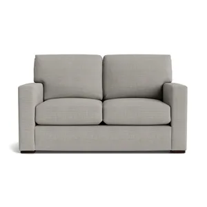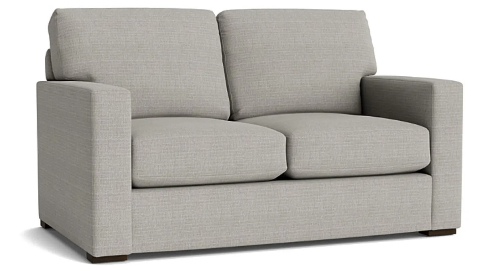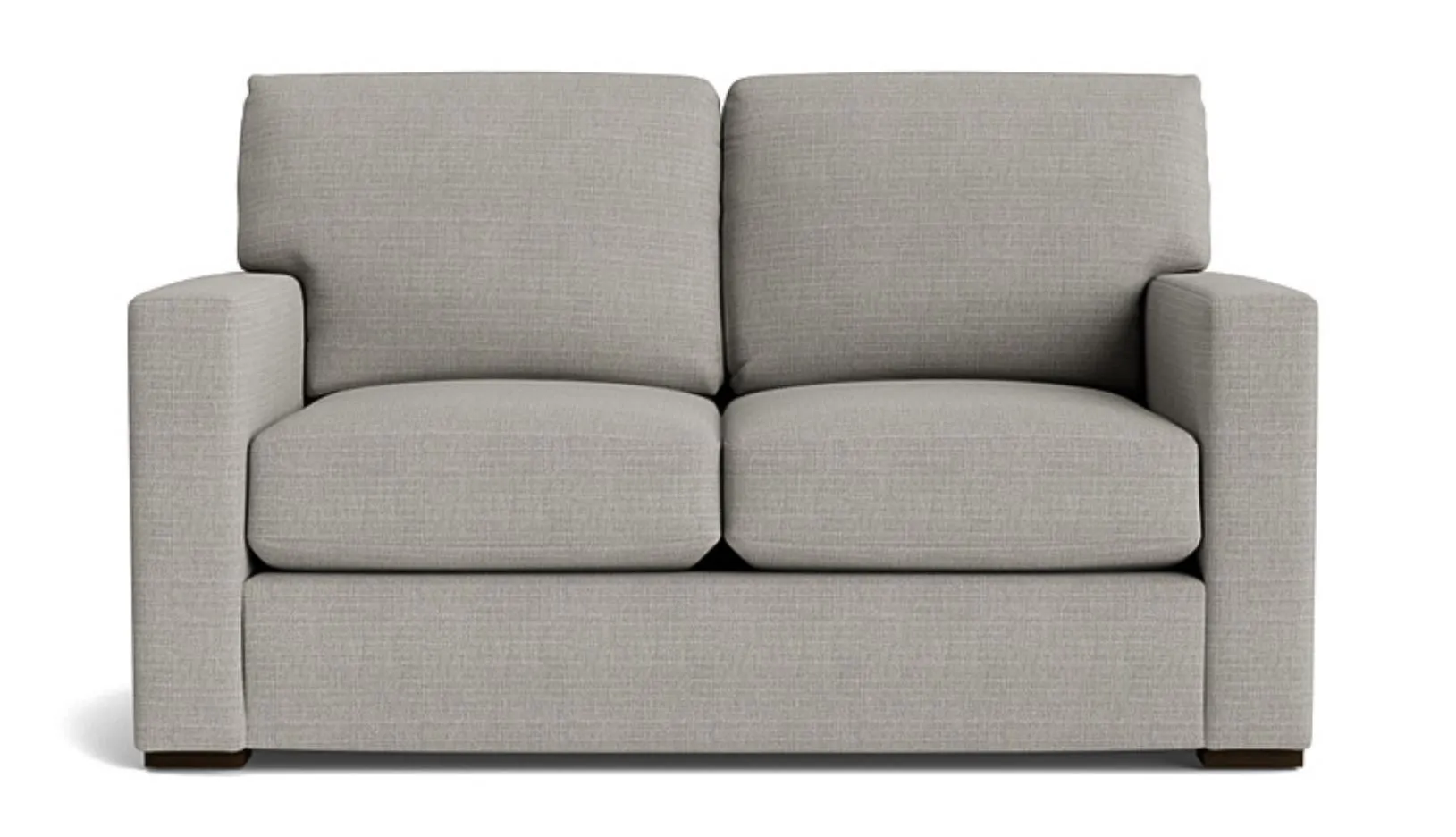 You'll find love at first sight with the Anson loveseat. This transitional go-anywhere piece sets the mood with clean-lined track arms and low block legs with Brindle finish. Soft, attached boxed back cushions and top-stitched seat cushions make it easy to relax in this always-appealing loveseat. Choose your favorite Revolution fabric: Canvas, Sisal, or Chrome.