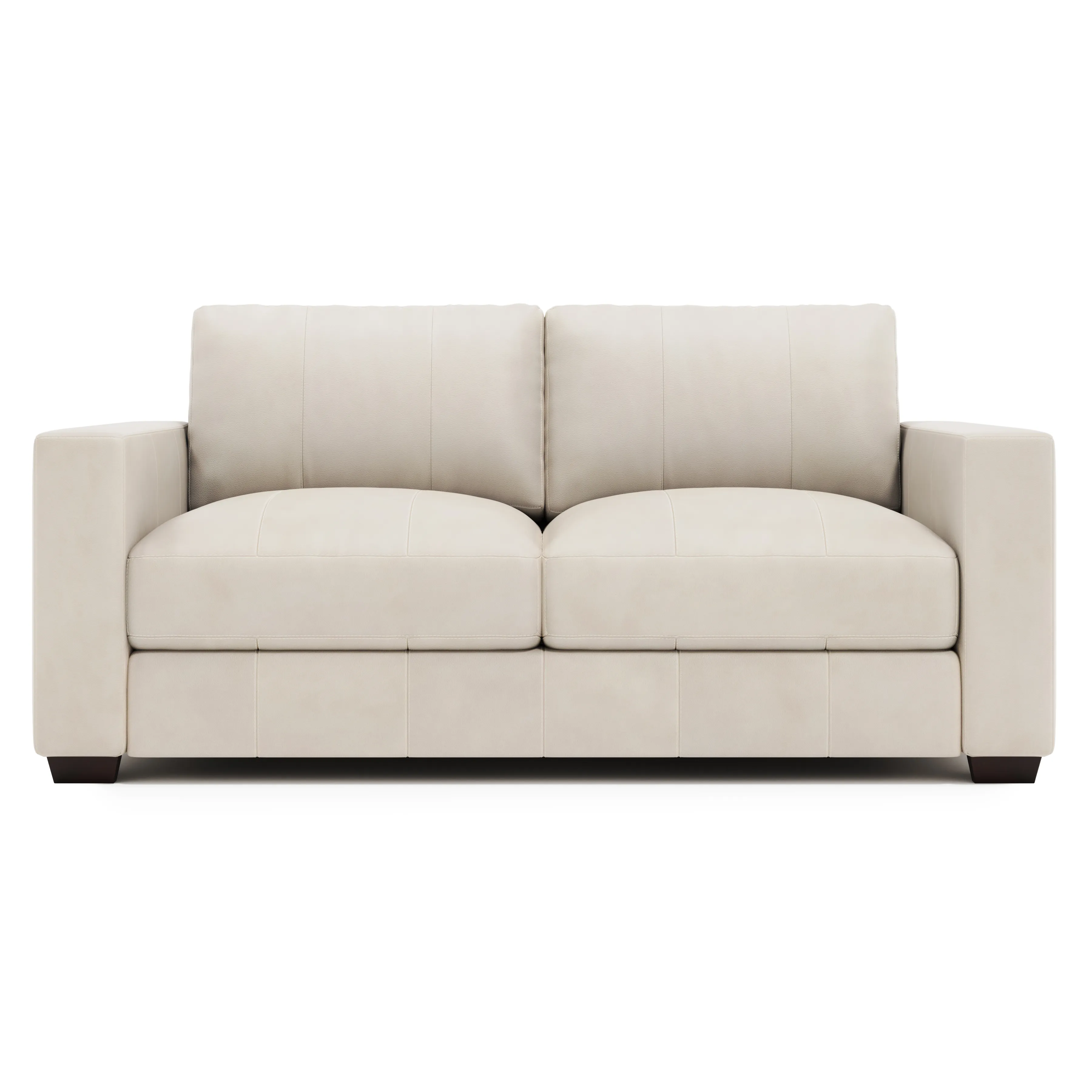 Dressed in luxurious top-grain leather, the Dawkins loveseat offers casual comfort with a high-end look. The timeless modern design features wide track arms and tapered block feet. Plush cushions and fiber back pillows make this sophisticated loveseat the perfect place to lounge in style.