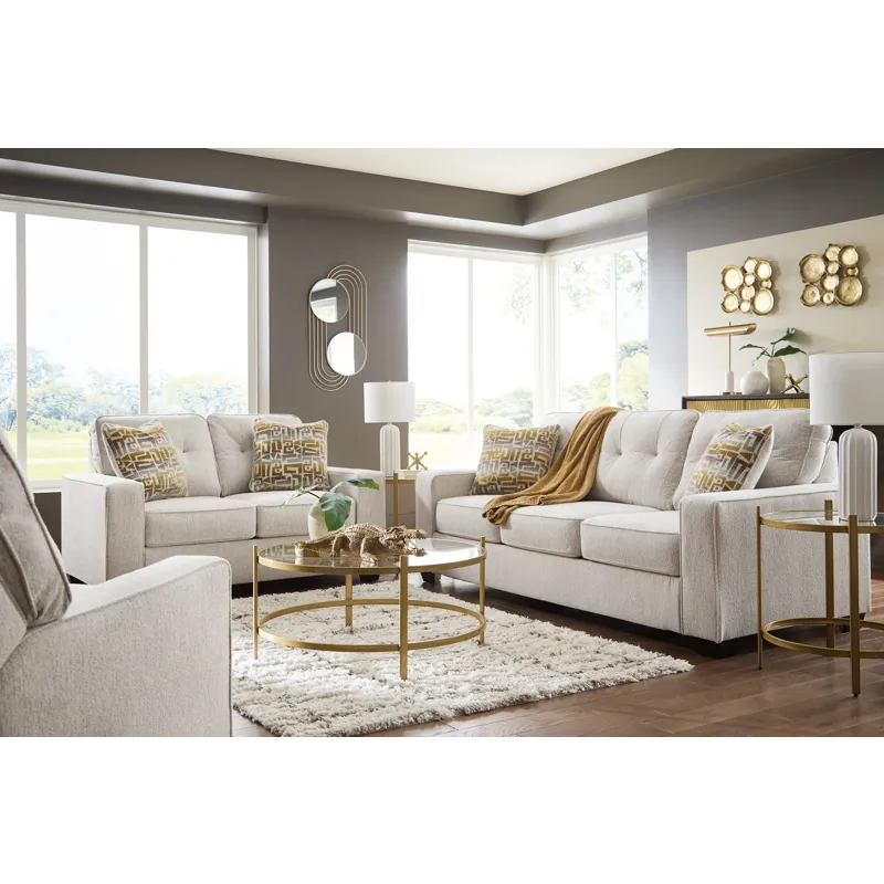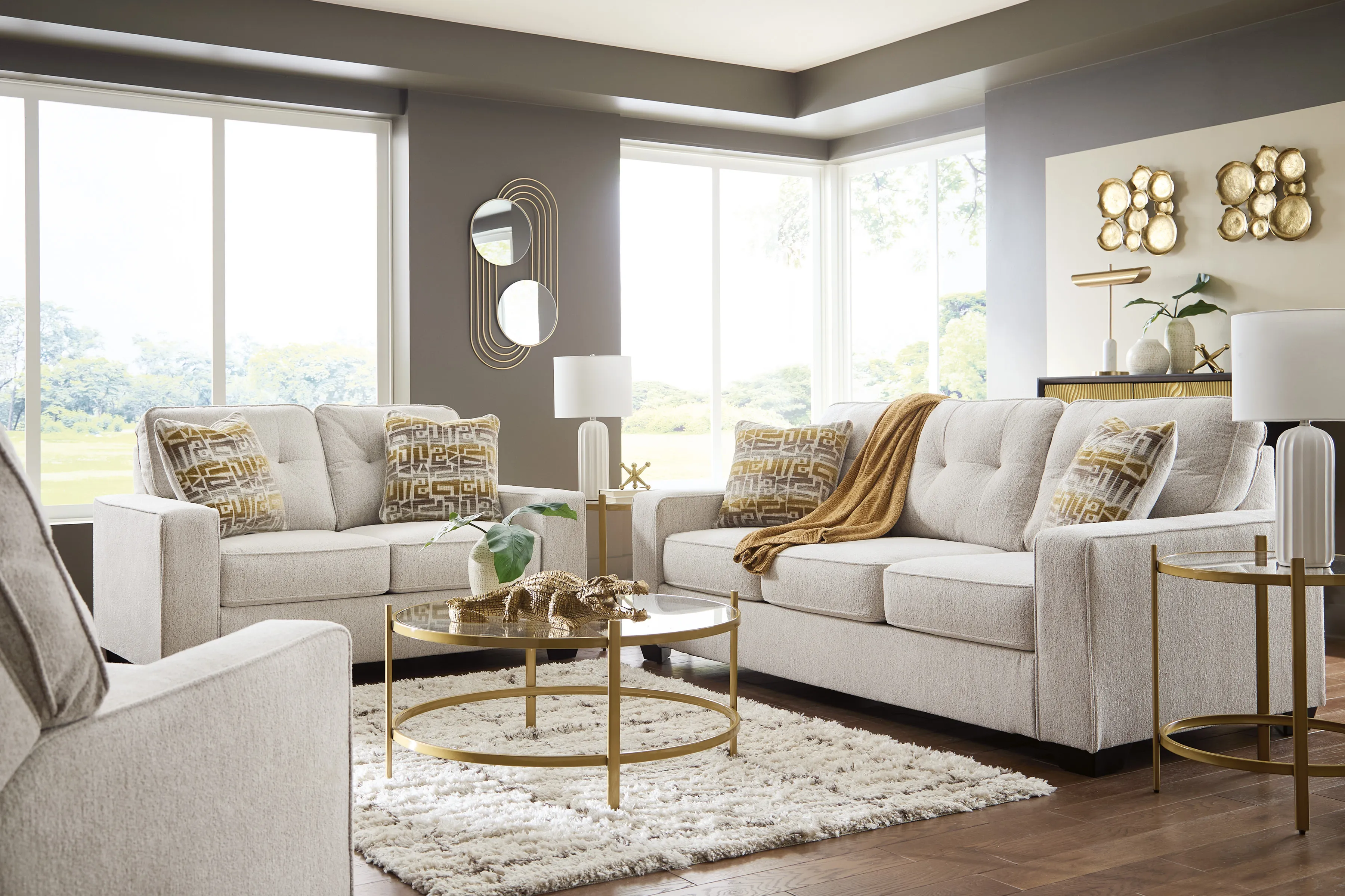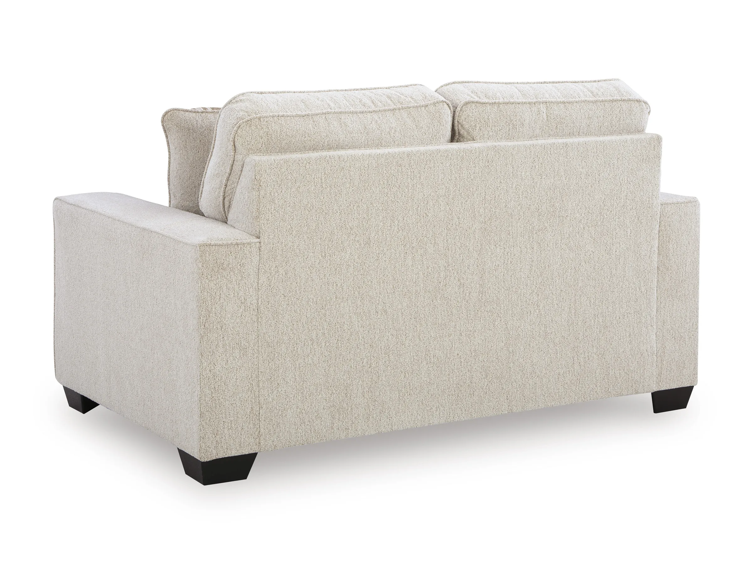 Sincere in its styling, this loveseat marries classic function with modern design elements for truly transitional appeal. Its track arms lend a contemporary vibe while soft, durable upholstery ups the comfort level. And with the loveseat's goes-with-anything neutral color, styling is made simple. All that’s left for you to do is to sit back and relax.