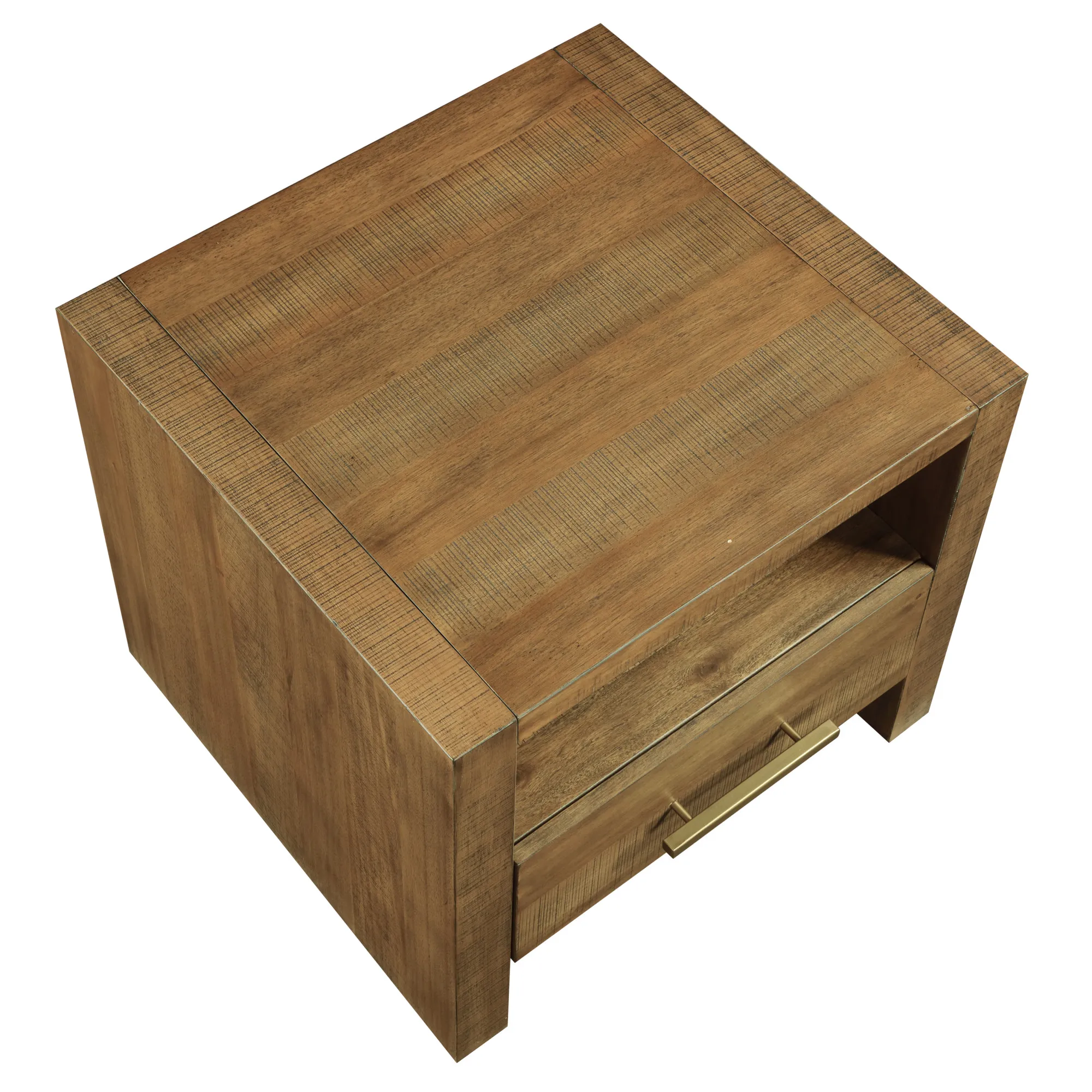 - The wood is hand-stained in a natural multi-step toffee finish to highlight the natural grain and knots of the wood