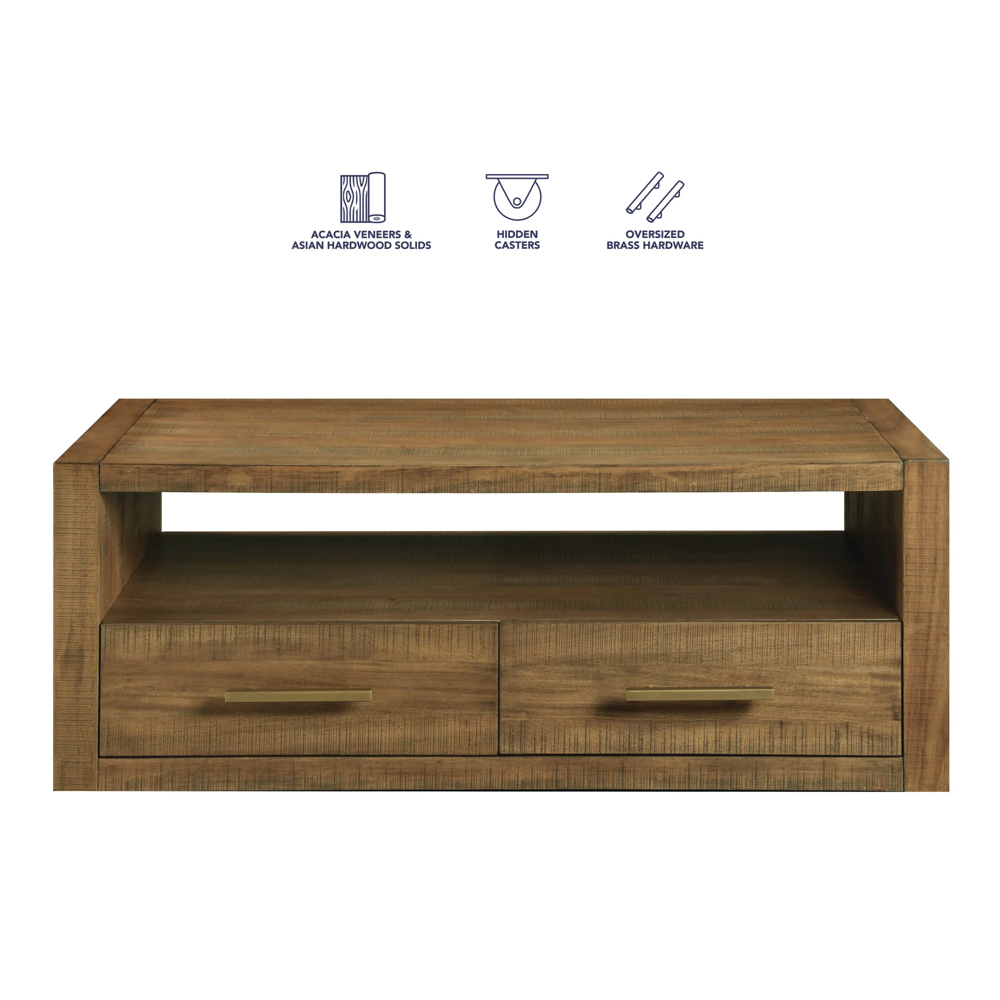 - Expertly crafted from Acacia veneers, solid Acacia and Asian hardwoods and engineered woods