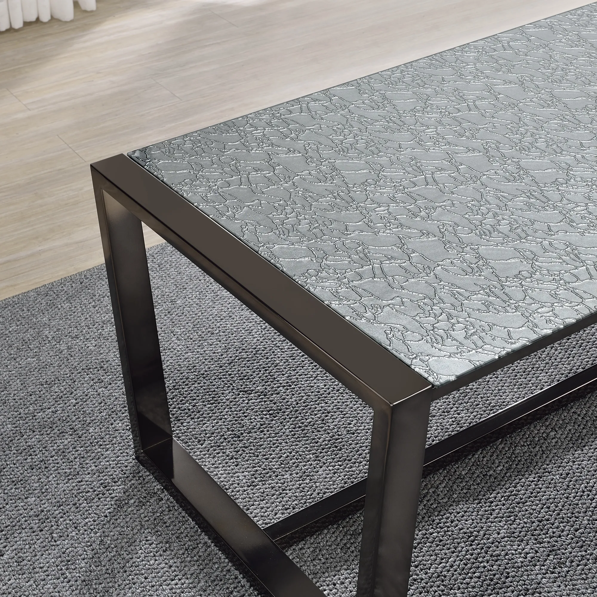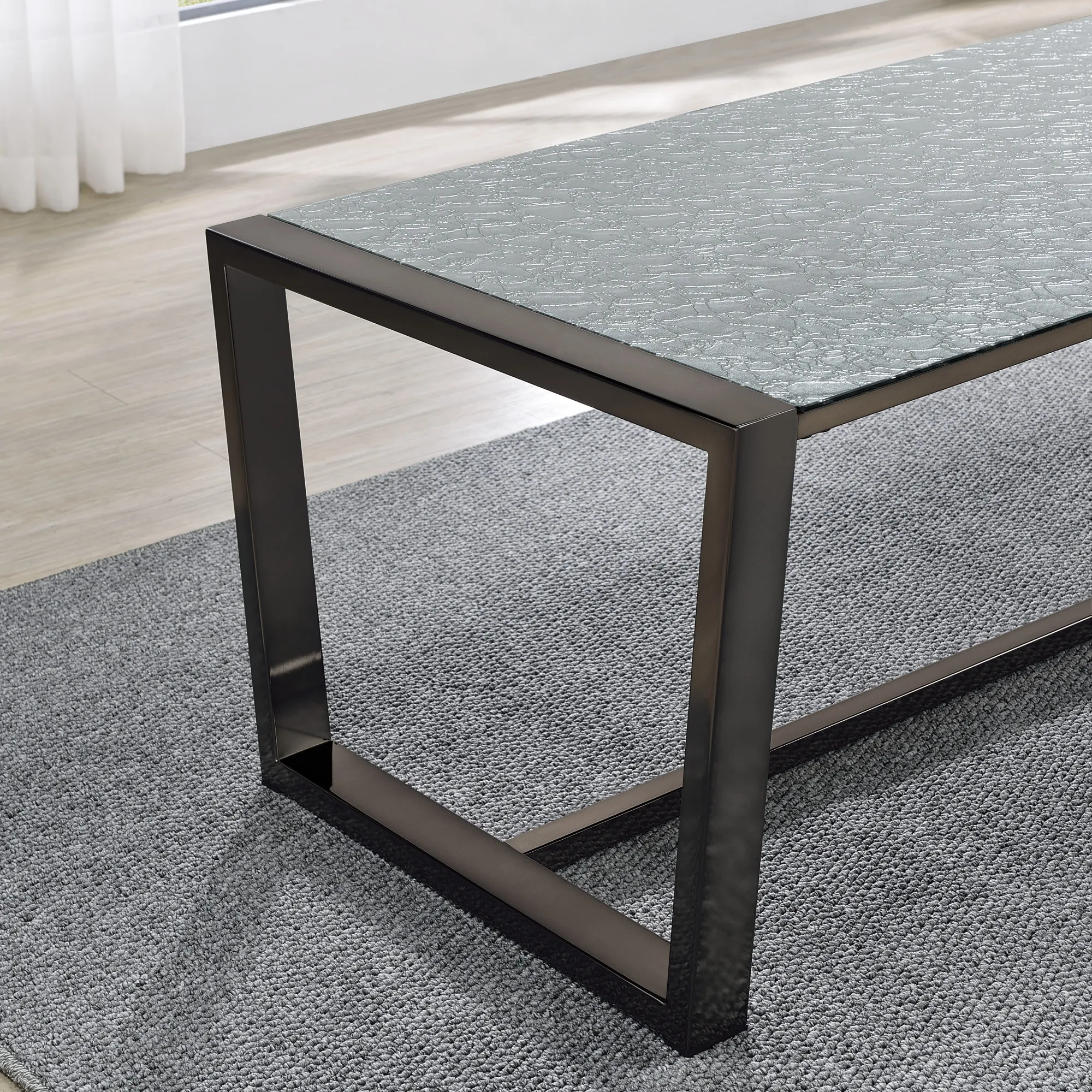 The Mazie Table set brings a light and airy feel to any room with its modern glass and chrome design. With a captivating black nickel base and spacious patterned mirror top, it seamlessly blends contemporary style with everyday practicality. The expansive mirrored surface offers ample space for displaying decor, books, or drinks, making it perfect for both entertaining and everyday use. Make a statement in style with the Mazie Table Set—a chic addition to your contemporary living space.