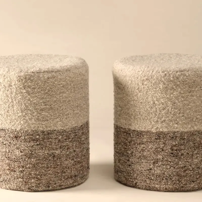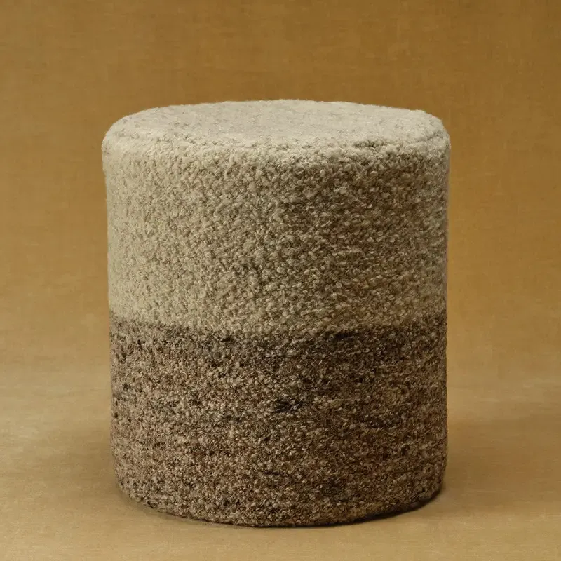 Cozy and stylish in the same moment, the Folke pouf collection boasts the soft and inviting texture of the on-trend shearling look. Crafted of wool, the cylinder Micco pouf showcases boucle details and a color-blocked design. The heathered gray and cream colorway offers a perfectly neutral palette to modern interiors.