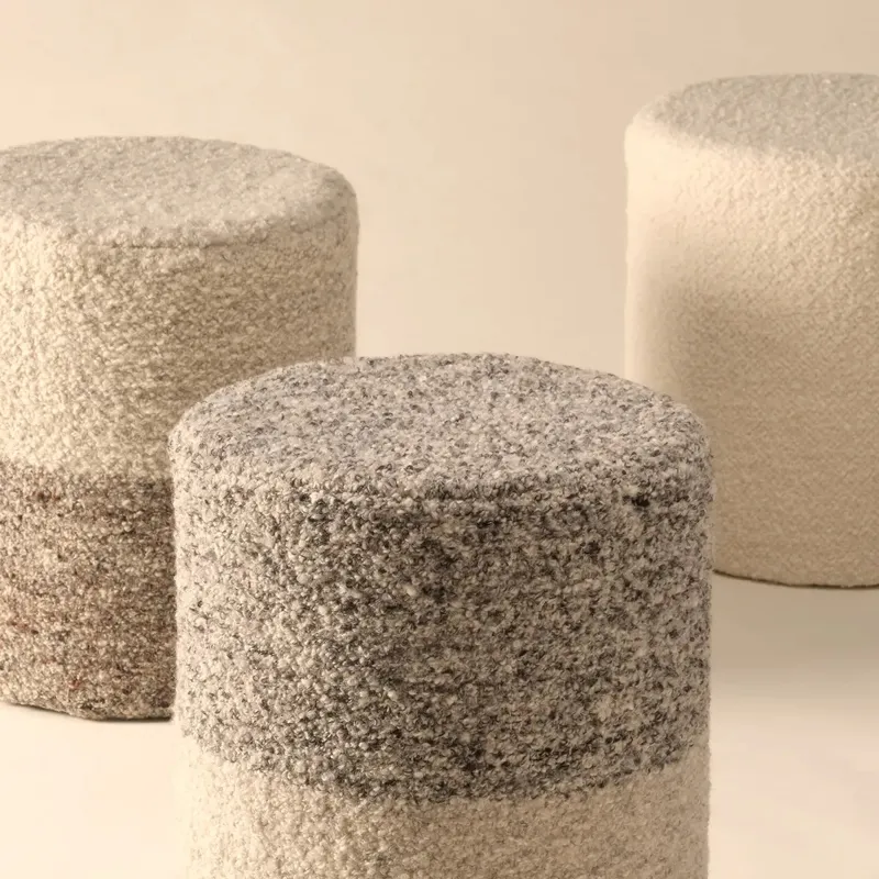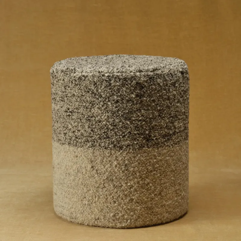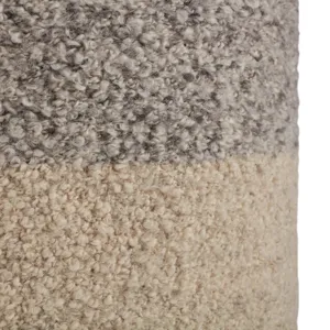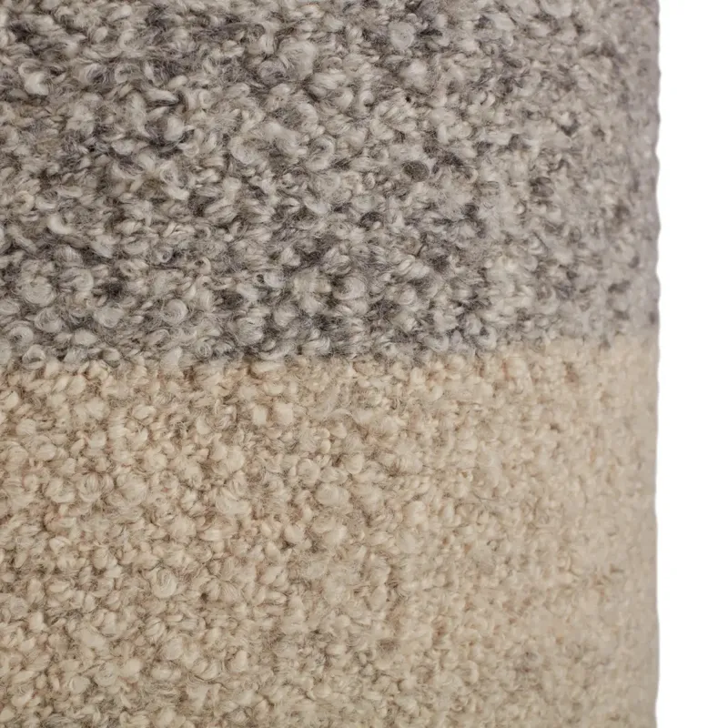 Cozy and stylish in the same moment, the Folke pouf collection boasts the soft and inviting texture of the on-trend shearling look. Crafted of wool, the cylinder Micco pouf showcases boucle details and a color-blocked design. The heathered gray and cream colorway offers a perfectly neutral palette to modern interiors.