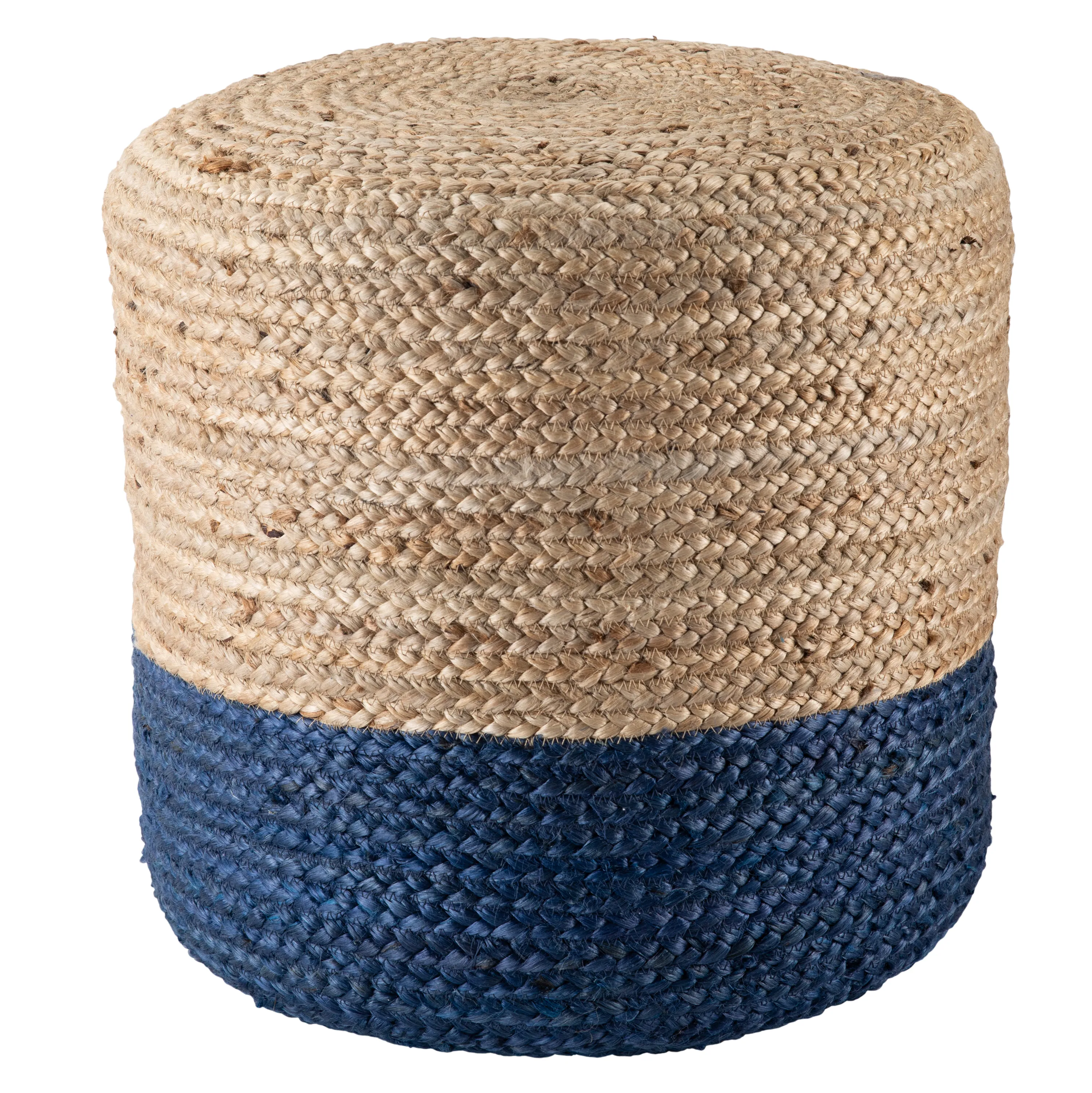 The Saba pouf collection offers natural, organic-inspired style to any home. The texture-rich Oliana pouf lends global vibes with an artisan-made, braided jute construction. An ombre design of nautical blue and natural jute provides a versatile complement to coastal and bohemian spaces alike.