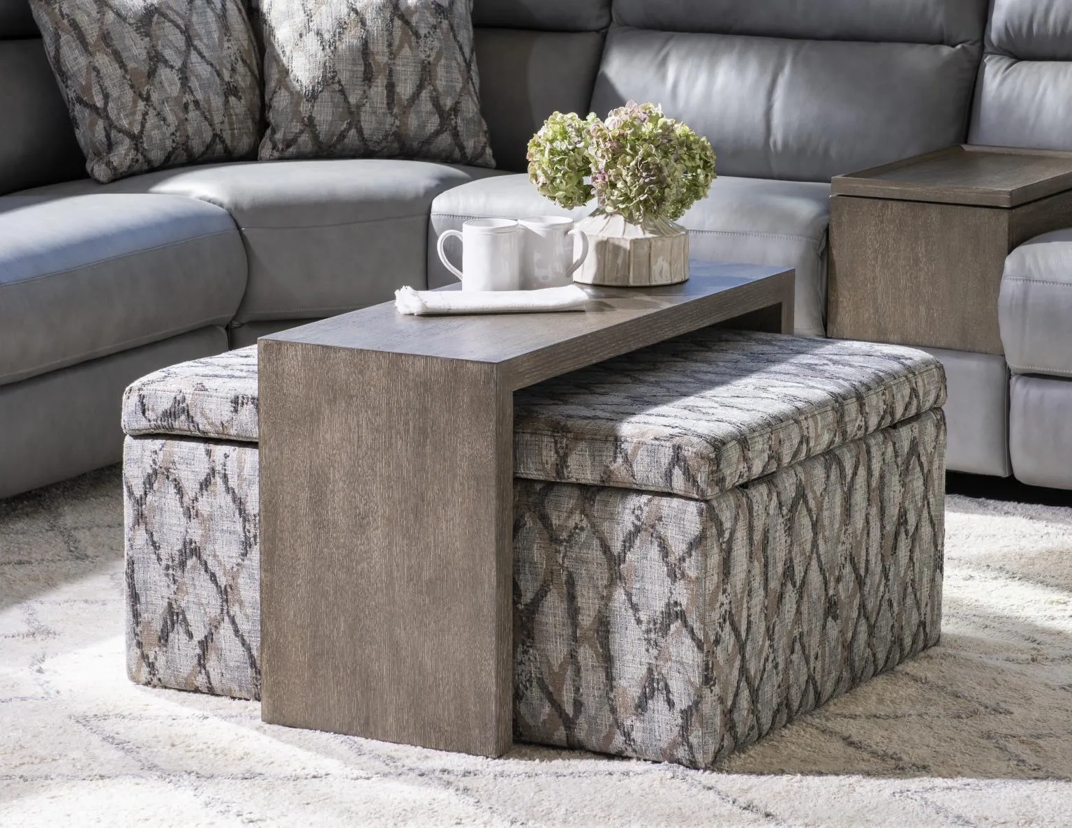 The Malina Positano Storm Cloud Square Storage Ottoman W/Wood Top Overlay Shown In Twilight by Legacy Classic may be available at Howard's Budget Furniture & Mattress in the