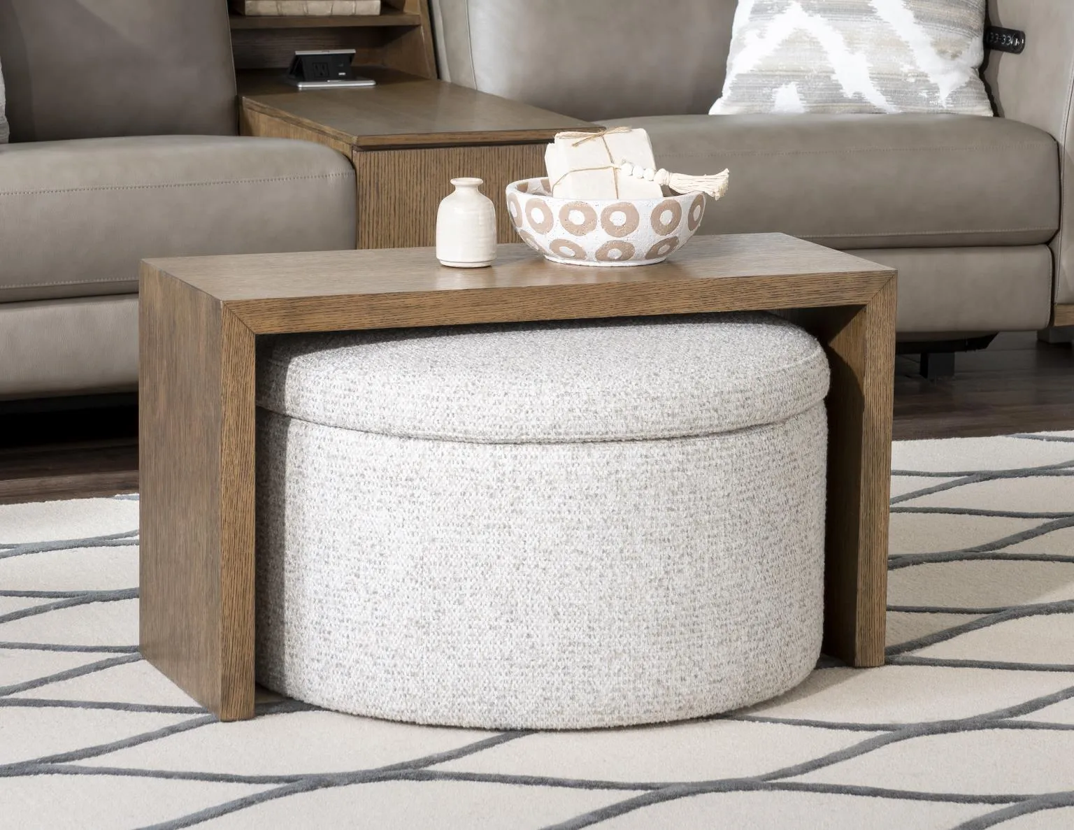 Luna Verona Fossil Ottoman With Pop Up Tray