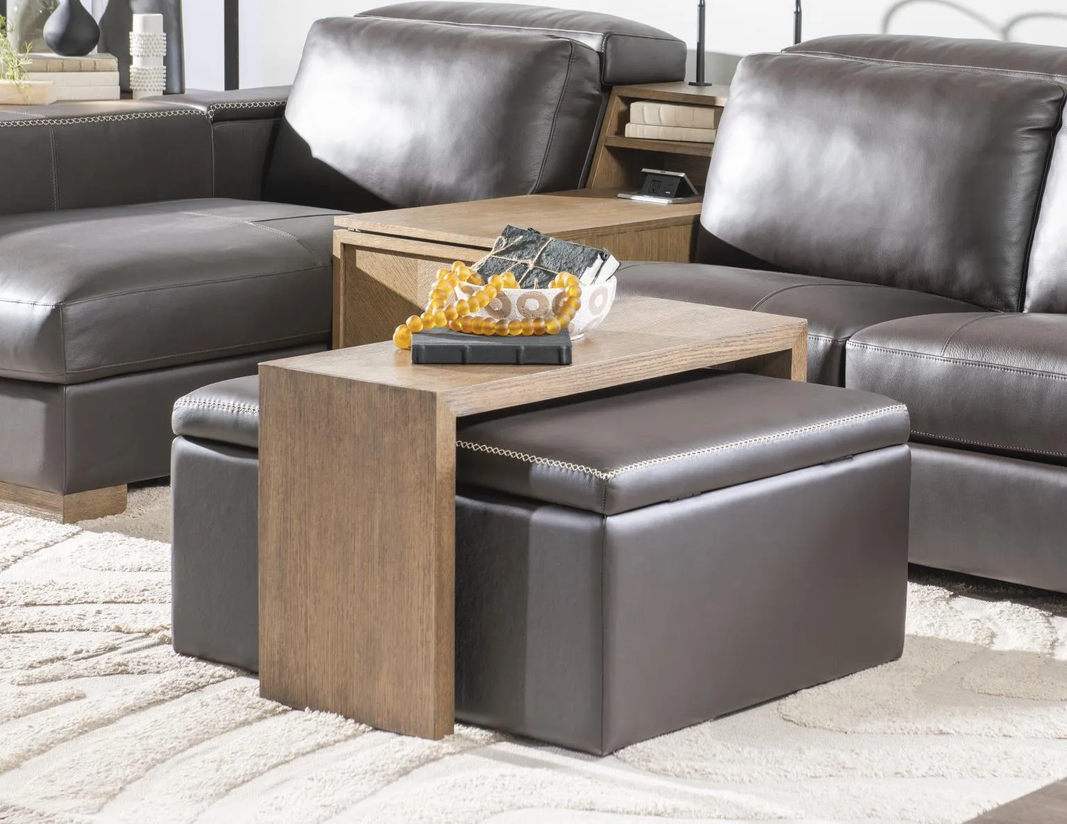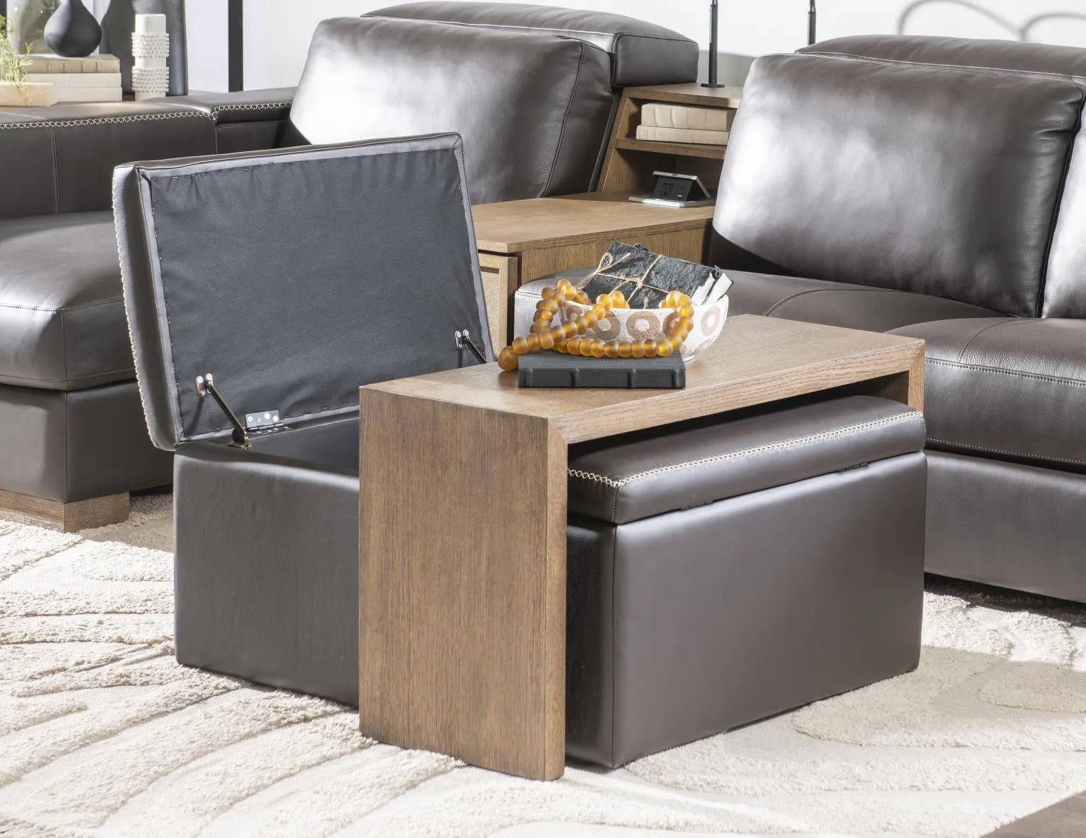 Square Storage Ottoman With Wood Top Overlay