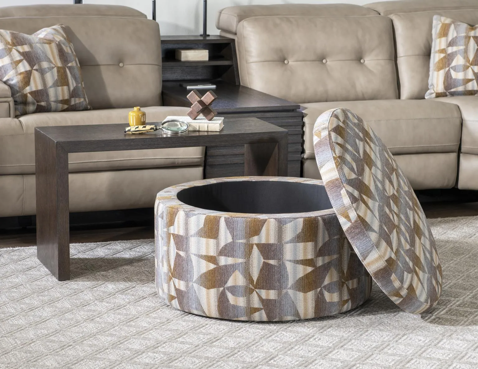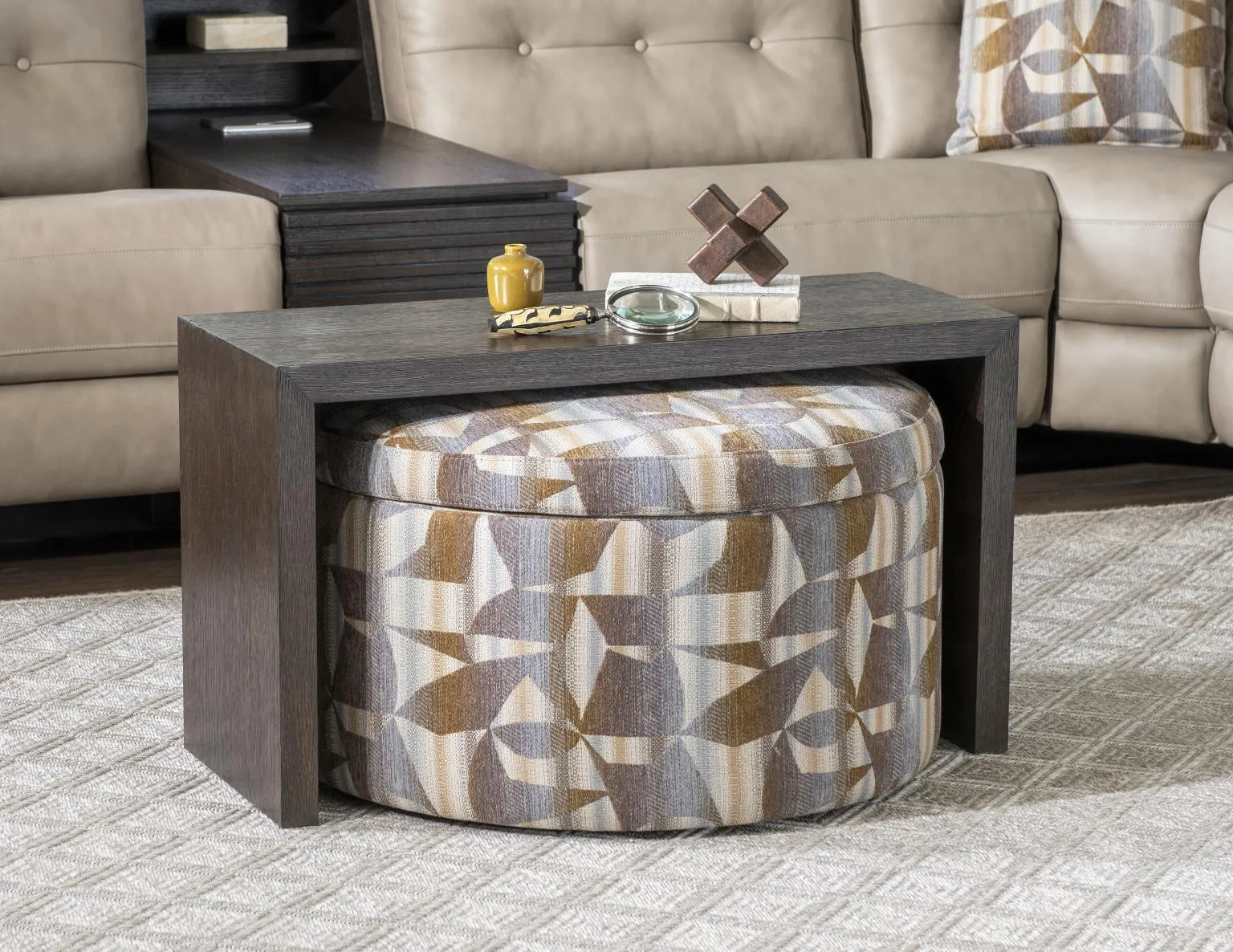 30" Round Castered Ottoman With Wood Tray Overlay - Shown in Fossil