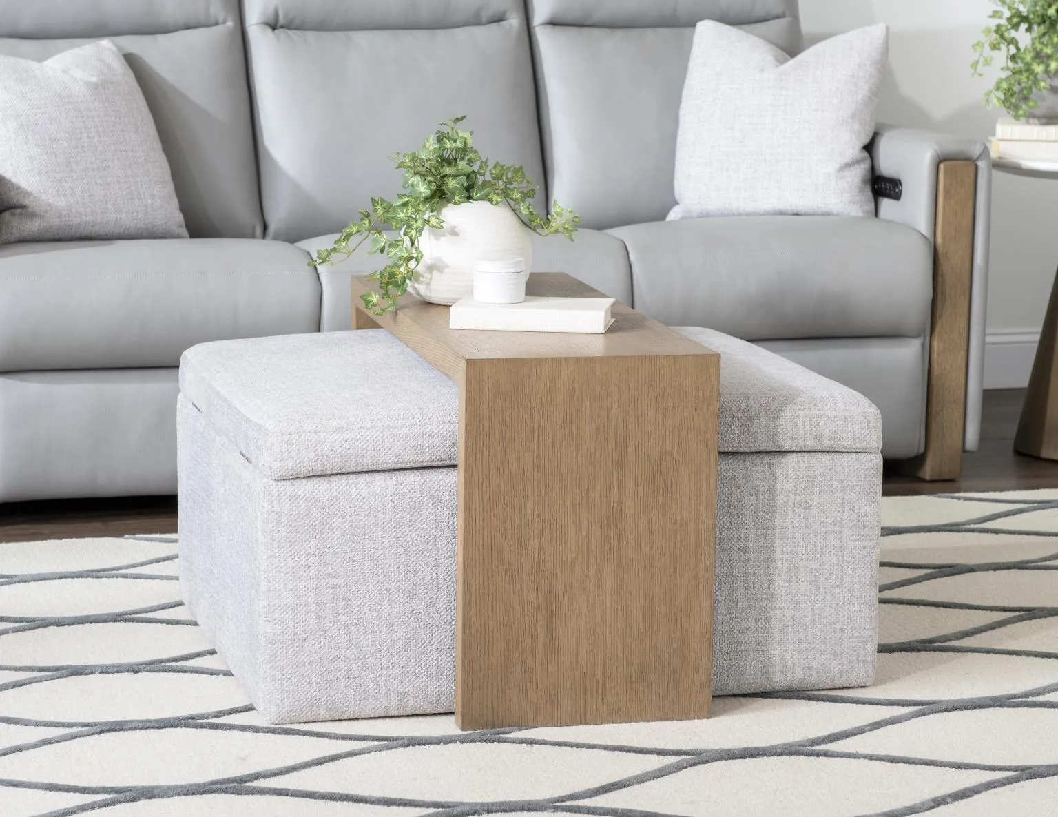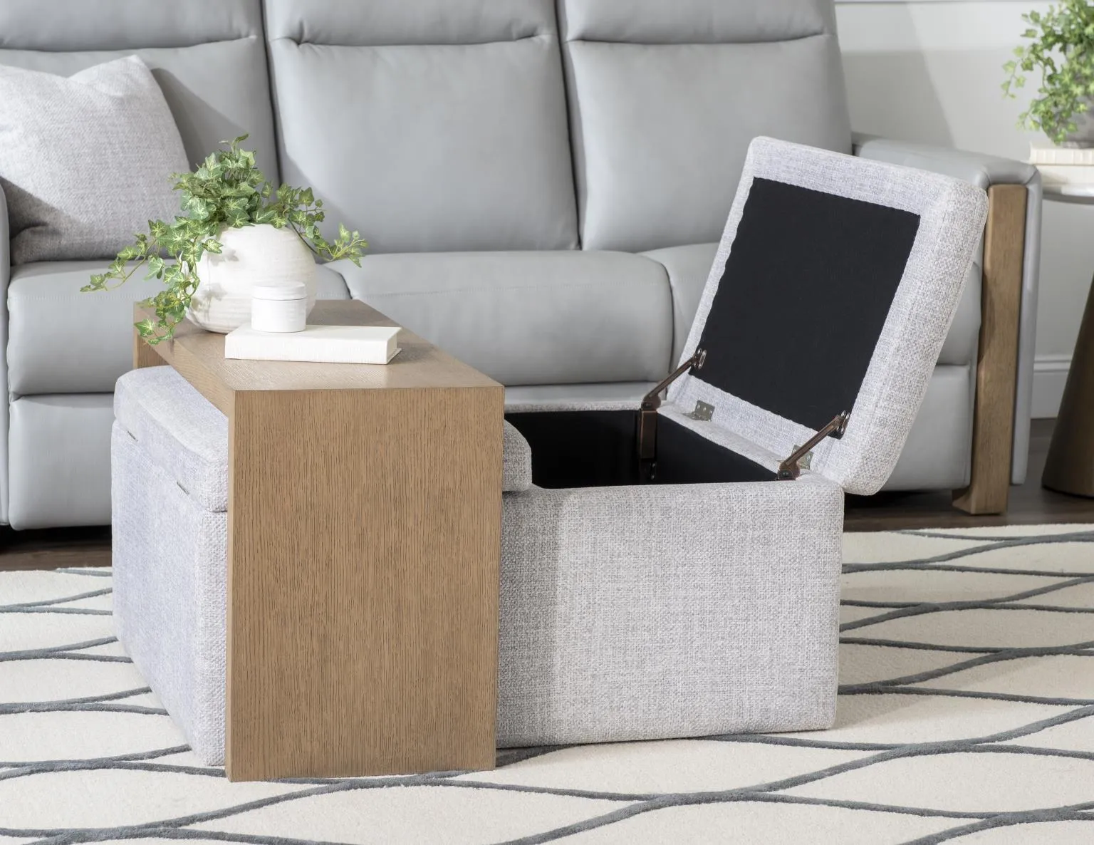 Square Castered Storage Ottoman With Wood Tray