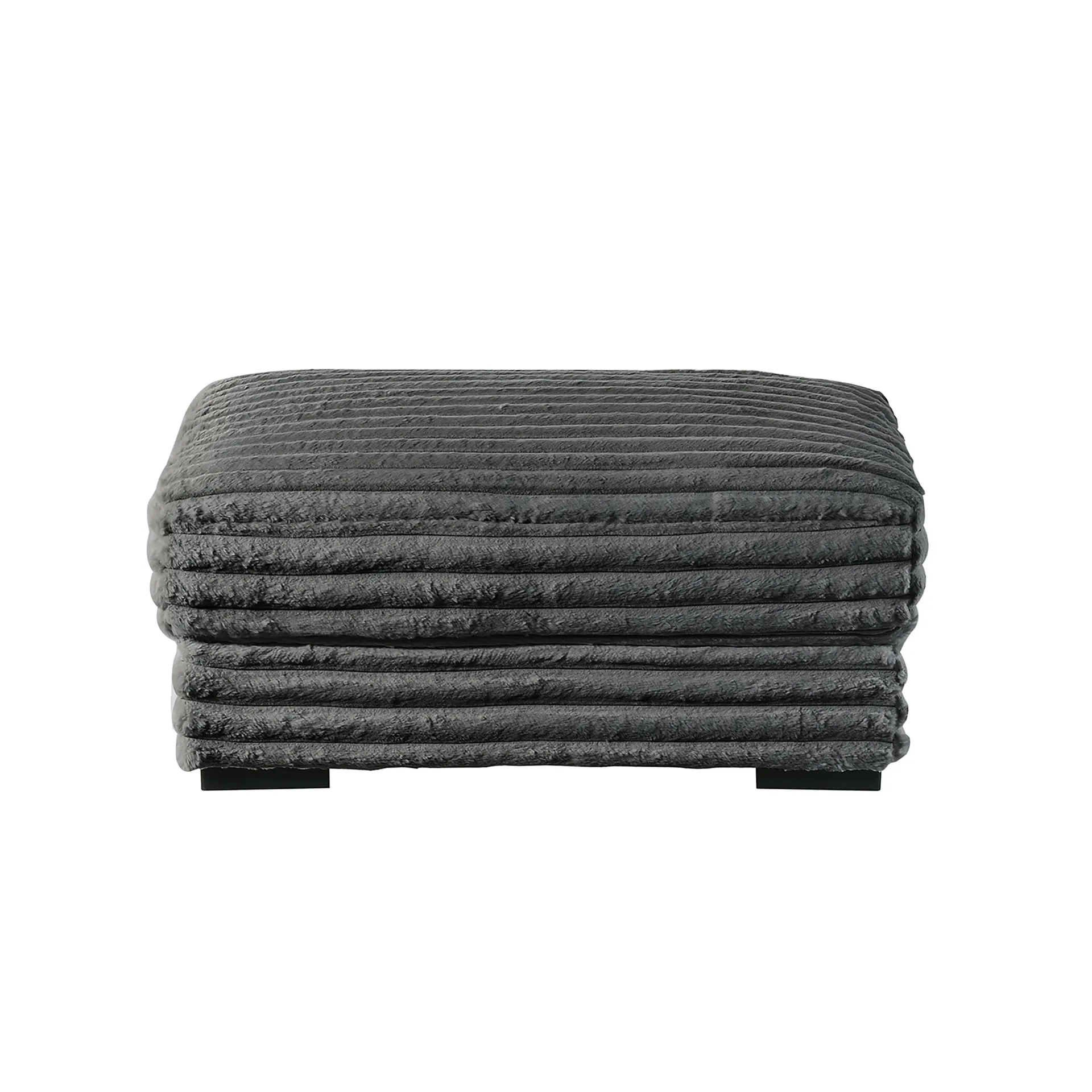 The Embrace Ottoman in charcoal gray is the perfect addition to your living space, offering both style and functionality. Crafted from 100% charcoal gray polyester fabric with a plush, blanket-like texture, it promises ultimate relaxation. This versatile piece can be used as a footstool or extra seating, thanks to its high-density, resilient foam cushions that provide a supportive and comfortable feel. The durable frame, made from a combination of solid and manufactured woods, ensures long-lasting quality. The luxurious ribbed channel fabric adds an elegant touch, making the Embrace ottoman a seamless fit with the rest of the collection, inviting you to lounge and unwind in style.