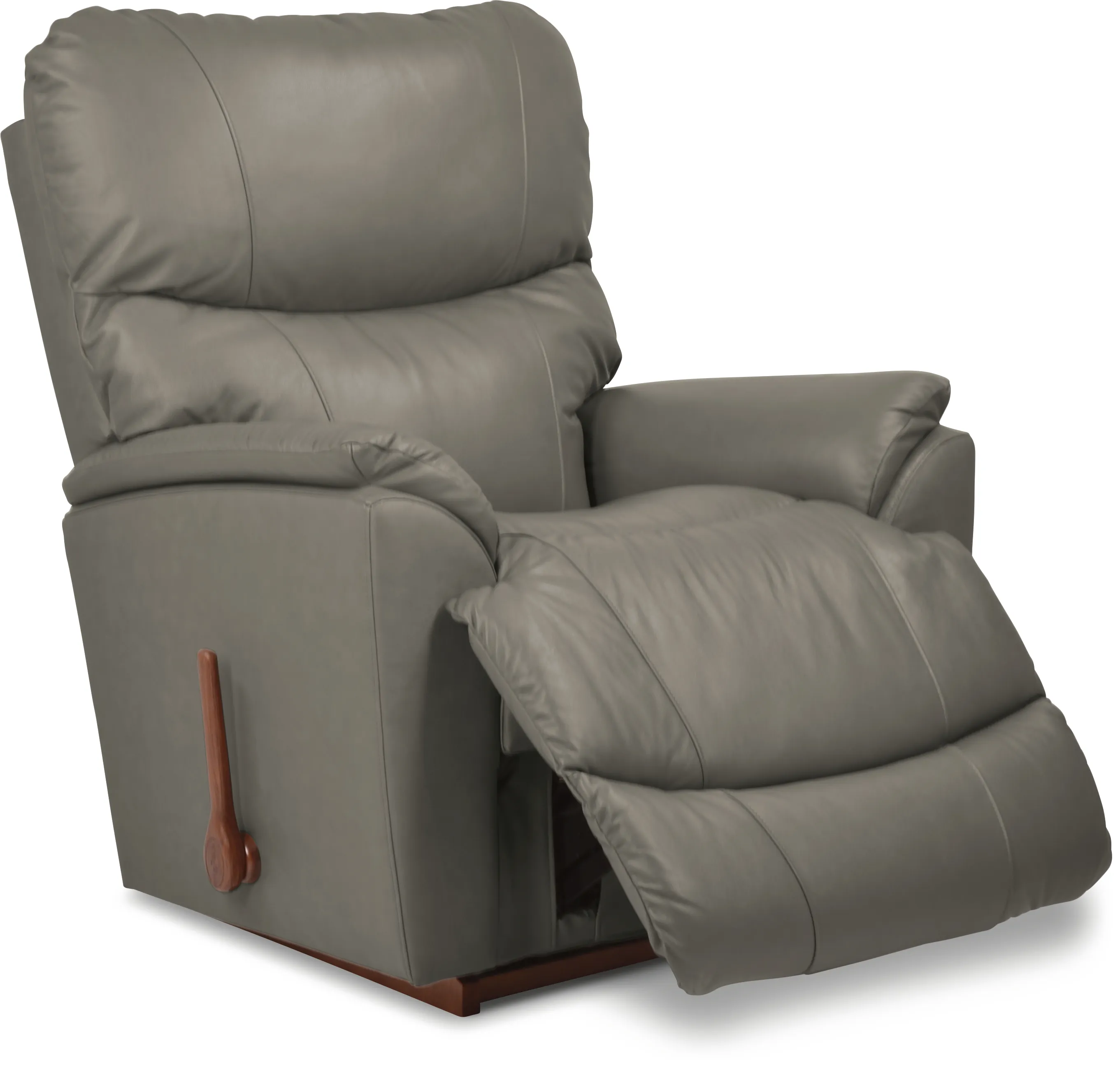 An updated silhouette, complete with slightly flared arms and a sleek tall back give Trouper a look that's fresh. It's also one comfortable rocking recliner. A sculpted bucket seat cradles you in softness while providing extra head and lumbar support. A convenient handle allows you to smoothly and easily adjust the legrest to your preferred position, or rock away the stress of the day. When it comes to comfort, Trouper always comes through.
