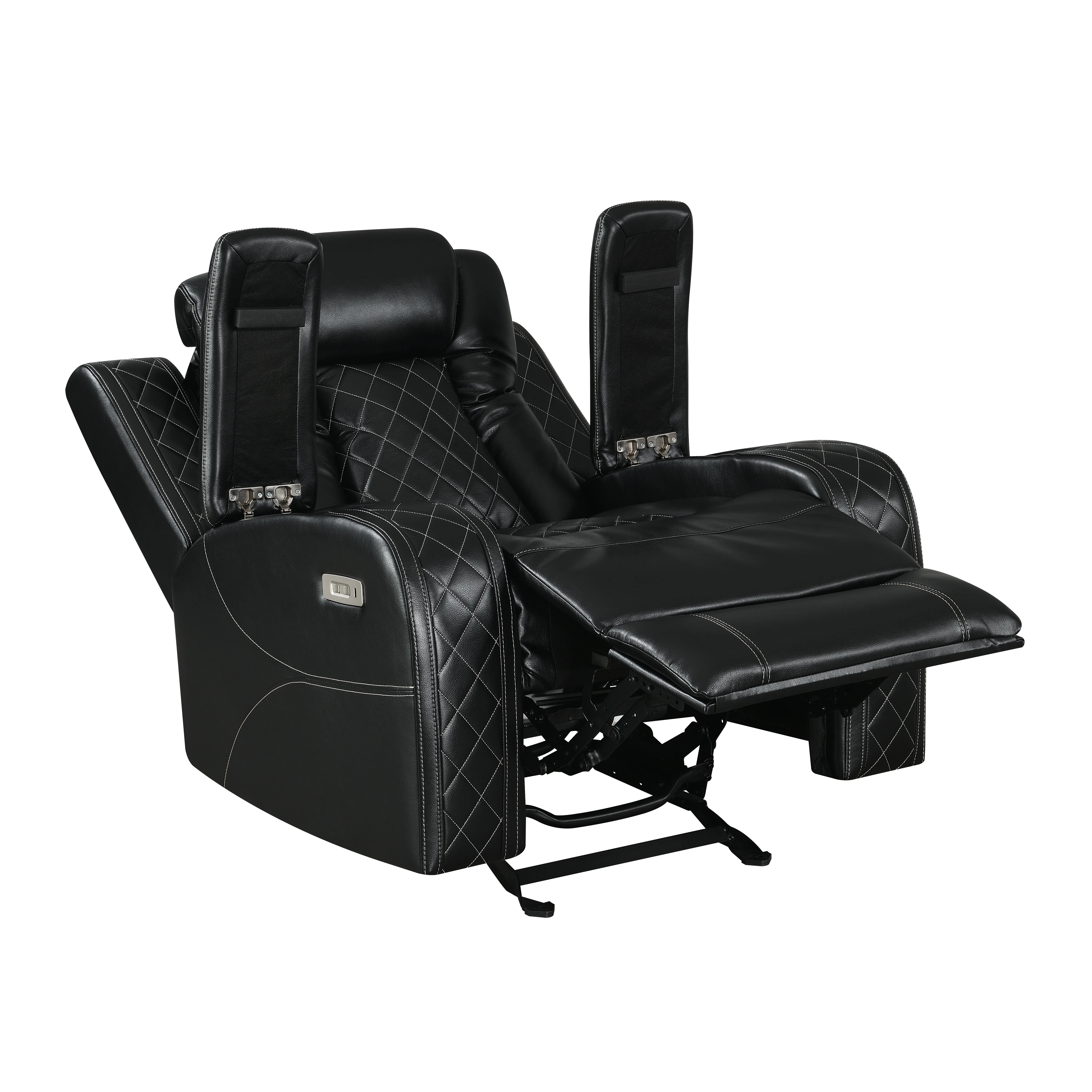 The Orion Motion Collection is a comfortable and stylish choice for any home. The collection includes a sofa with dual recliners, a console loveseat with dual recliners, and a glider recliner, providing you with plenty of options for relaxation.Made from a combination of 80% polyester and 20% faux leather, the Orion Motion Collection is upholstered in either black or white, giving you a choice to match your decor. The collection storage arms, a drop down center sofa back drink tray with a lift up light bar, and a wireless charger, making it convenient and practical for any space.In addition, the Orion Motion Collection includes theater lighting on the sofa and loveseat, as well as a Bluetooth speaker on the loveseat. The collection is also equipped with coil cushions and a hardwood/plywood frame, ensuring comfort and durability. The knockdown wing feature makes it easy to transport and assemble.Overall, the Orion Motion Collection is a stylish and comfortable choice for any home. Its convenient and durable construction make it a great addition to any living space.