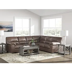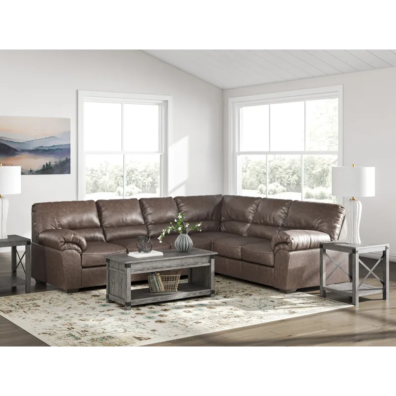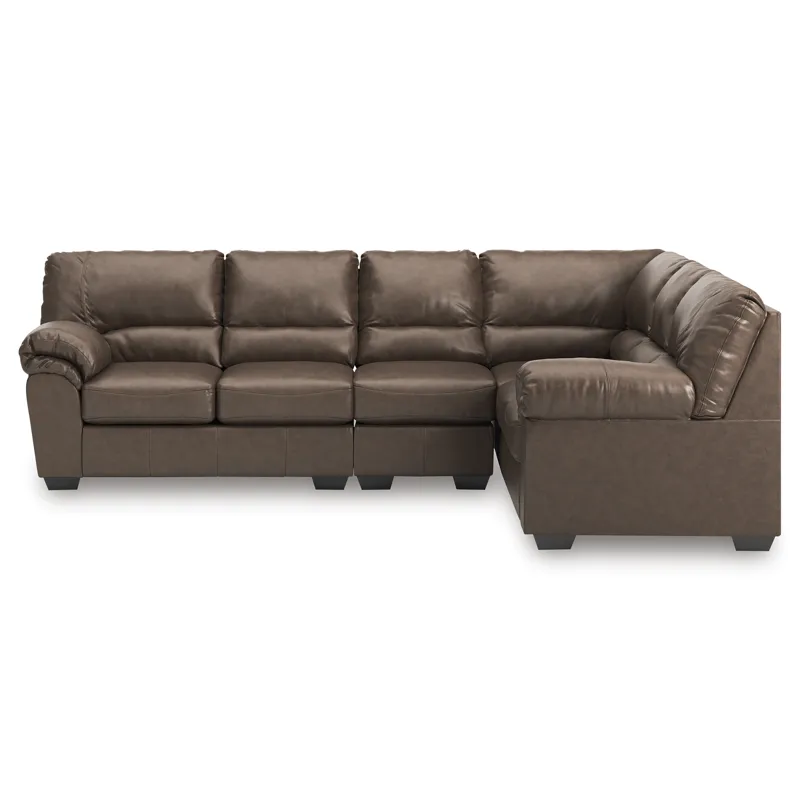 Modern comfort never looked so good. Sporting supremely soft yet durable cushions accented with high-fashion jumbo stitching, this stunning sectional is the ultimate choice in comfortably cool, contemporary style. Its umber-hued faux leather indulges with an upscale feel and wows like the real thing.