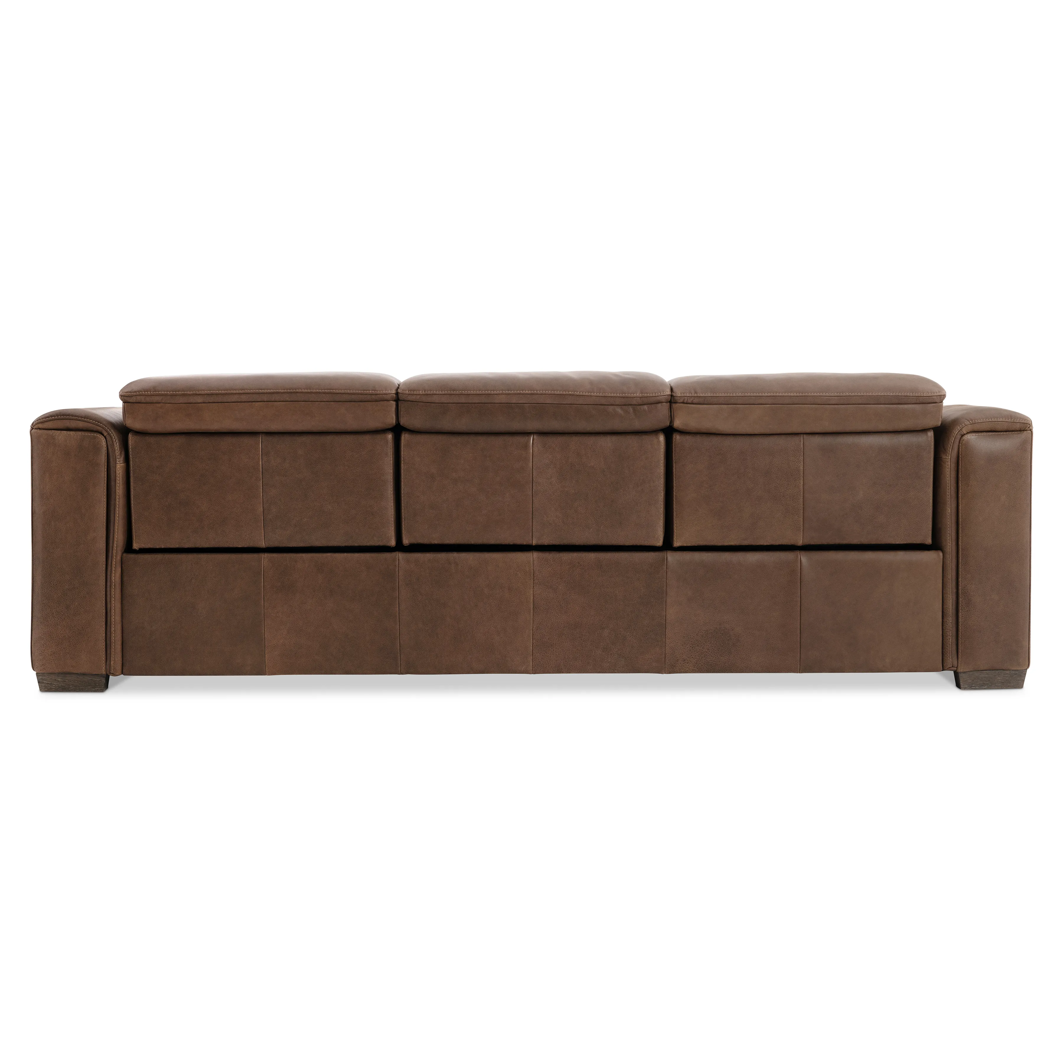 The Billings power motion sofa features an updated classic club seating design. The track arms feature a unique fold-over padding that offers comfort, while stitched details on the sides and back give the sofa a unique look. Smooth power motion reclines the outer seats while headrests pop up for support.