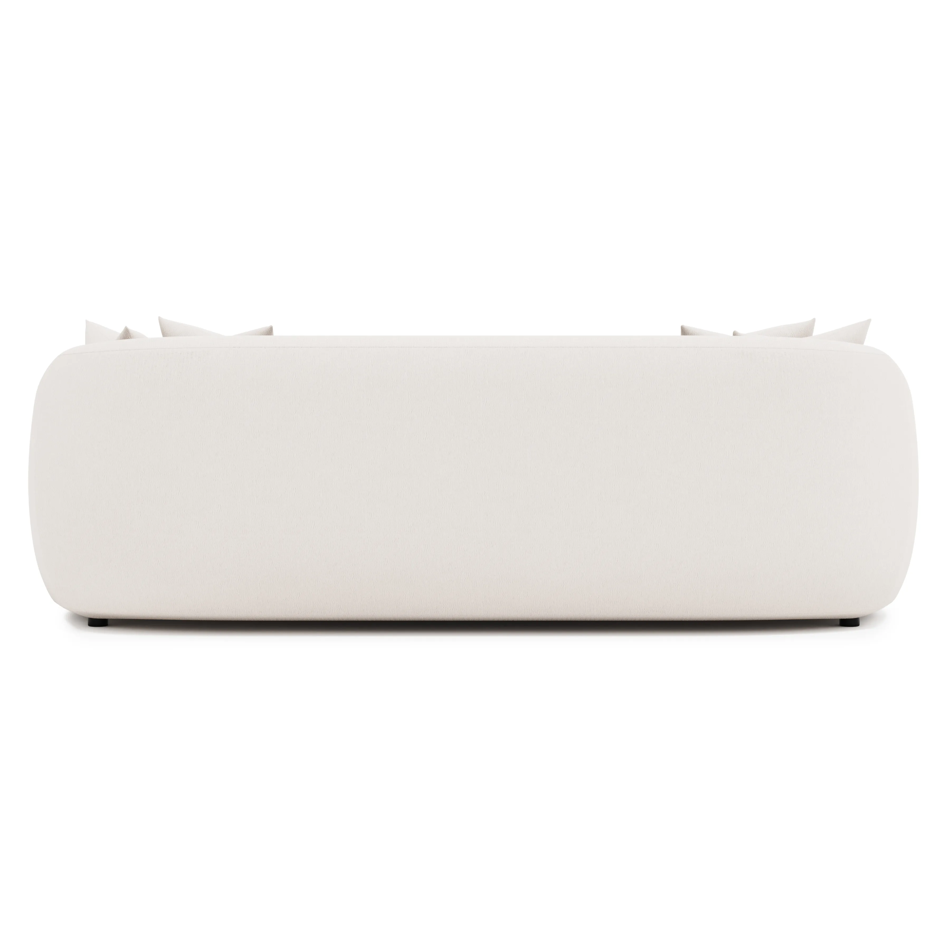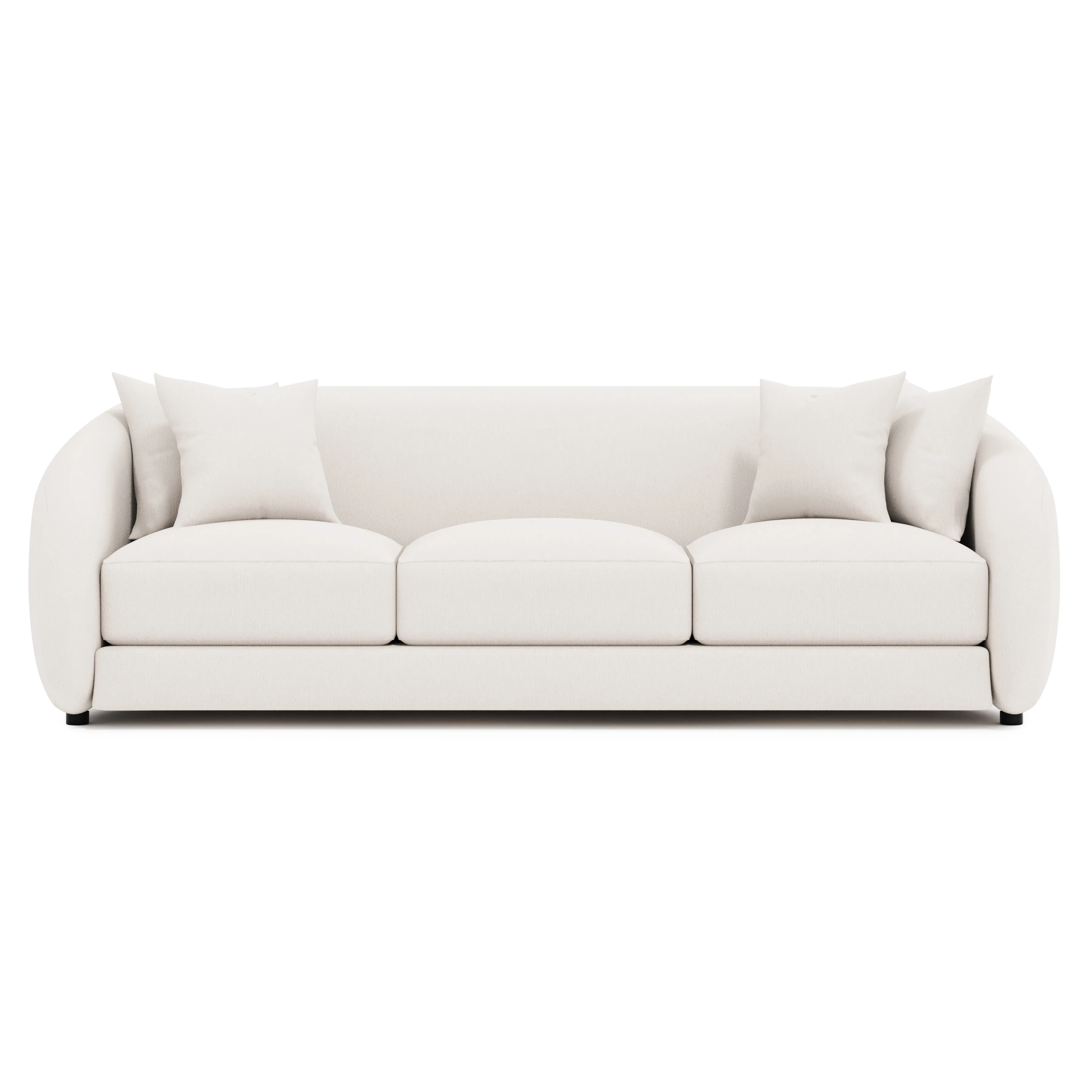 Forming one continuous curvaceous line, the back and arms of the Austen sofa create a modern silhouette. The tight back creates a streamlined structure, while the three deep cushions plus curated throw pillows offer a plush, comfortable seat. It's an elegant and tailored style with a graceful design.
