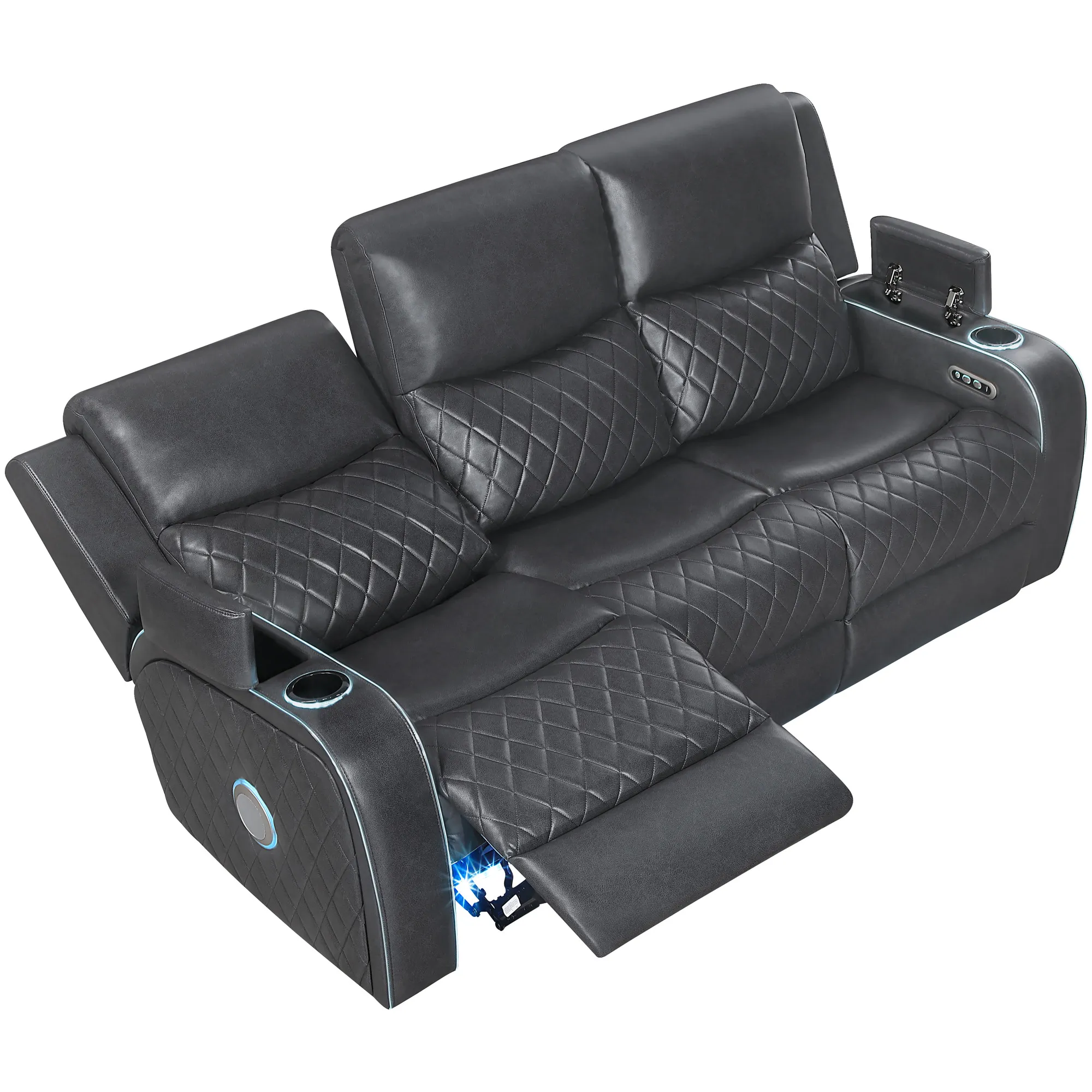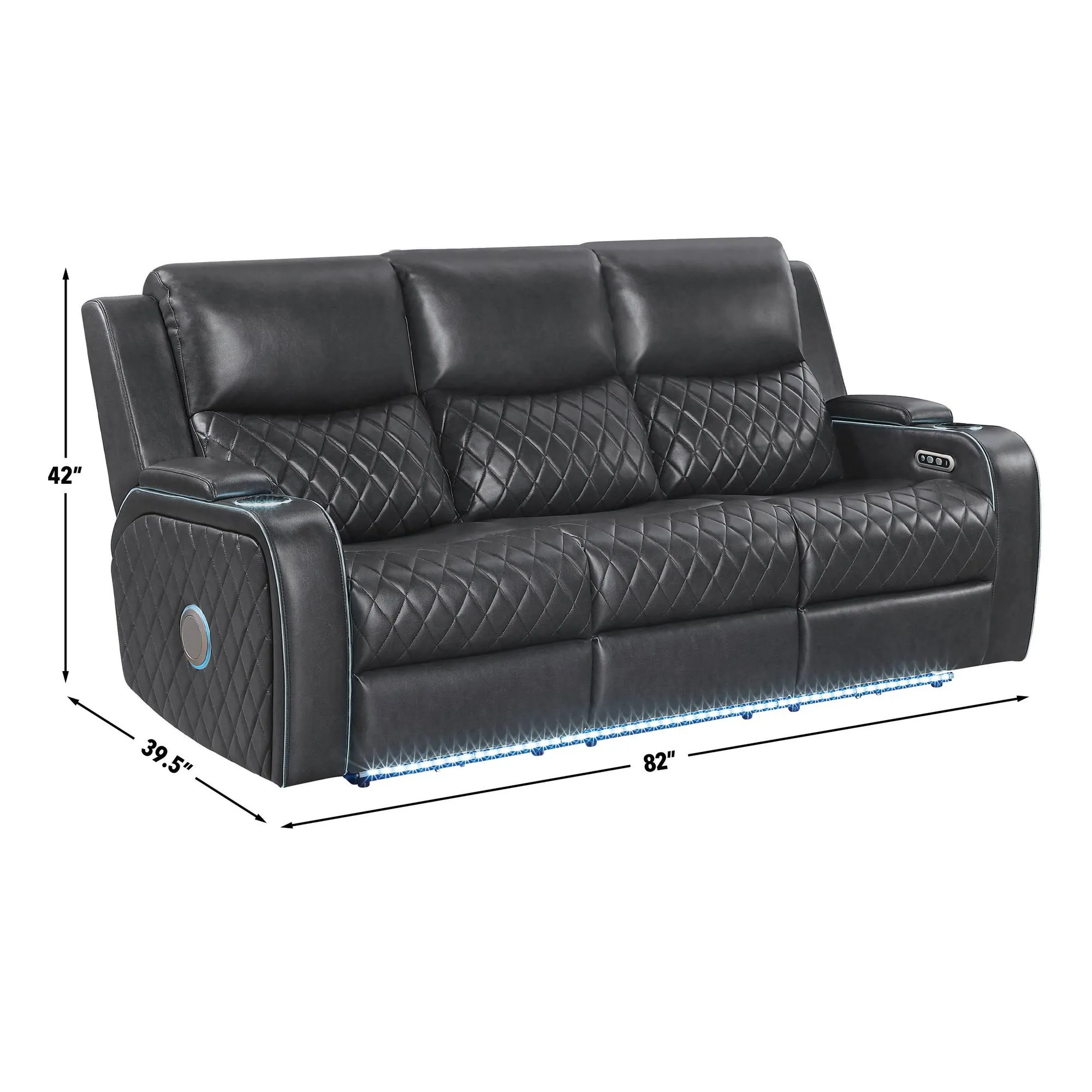 Experience home entertainment in style with the Luna, crafted from supple vegan leather in sophisticated charcoal. Built-in speakers surround you with rich, clear sound, while soft ambient lighting sets the perfect mood. A convenient USB port keeps devices charged as you relax. With power reclining for personalized comfort, the Luna blends modern technology and timeless design, transforming any living space into a luxurious retreat for movies, music, or quiet evenings. Sit back, unwind, and let the Luna elevate every moment.