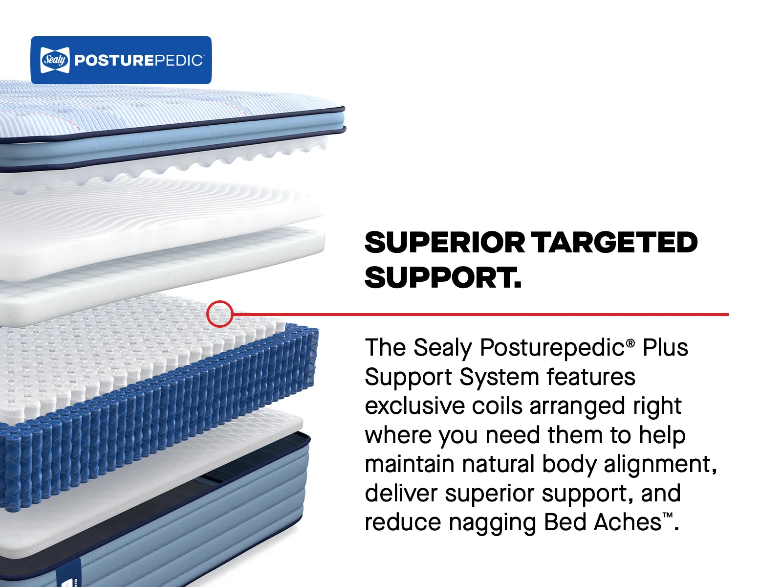 PrecisionFit™ Coils flex to your body’s individual needs, helping maintain natural alignment and reduce nagging Bed Aches™.