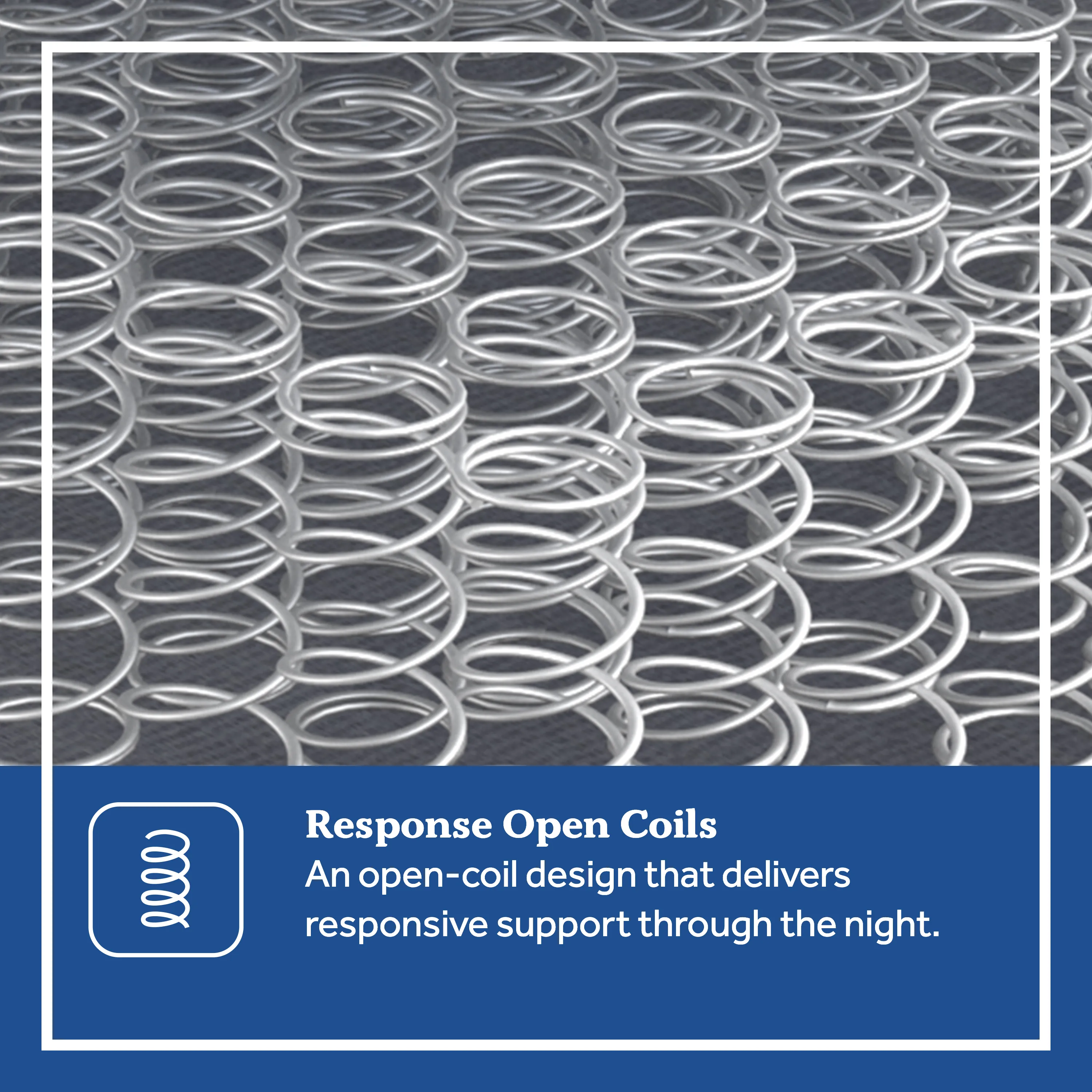 Response™ Open Coils combine with an added gel foam comfort layer to deliver an on-the-bed feeling, for a great night’s sleep at an affordable price. Available in a Soft or Firm feel.