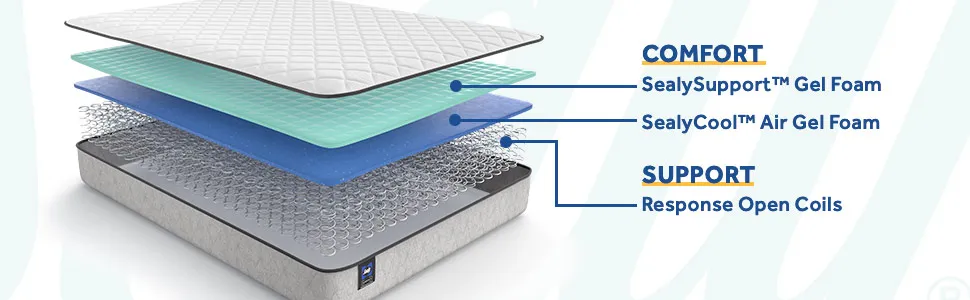 Perfect for guest beds, spare beds, and kids’ rooms, this spring mattress with a firm feel features Response Open Coils and a SealySupport™ Gel Foam layer for an on-the-bed feeling. It’s a great night’s sleep at an affordable price.