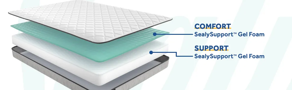 Our classic Essentials™ Collection is engineered for a great night’s sleep, delivering trusted Sealy® quality at an affordable price. This mattress features traditional SealySupportTM Gel Foam for flexible support and all-over comfort.
