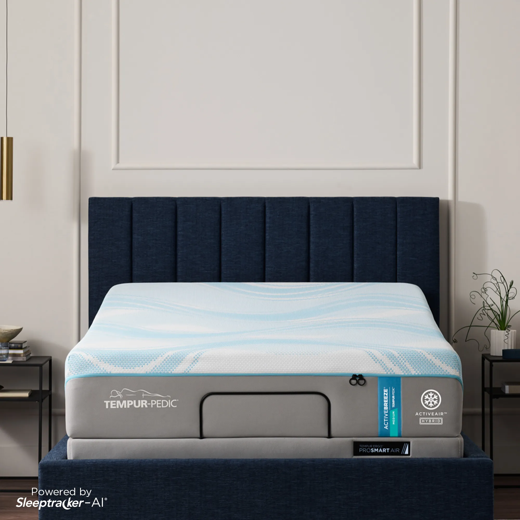 The TEMPUR-ActiveBreeze® smart bed features a dual-zone climate control system to meet the needs of couples with different sleep temperature needs. Innovative ActiveAir Technology® allows you to personalize the climate on each side of the bed to cool or warm the mattress for your comfort while TEMPUR-Material™ provides pressure-relieving support all night long.